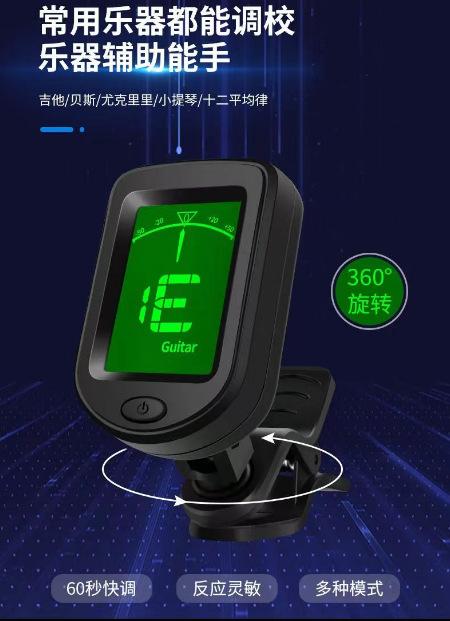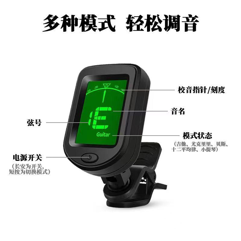 Afinador de guitarra folk, afinador de doce ritmos promedio, afinador de ukelele, afinador de bajo, instrumento musical