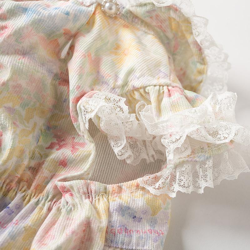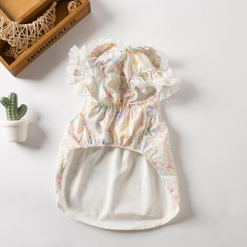 Ropa para mascotas, primavera y verano, nuevo vestido de princesa corto con encaje floral, ropa para el hogar para perros y gatos.