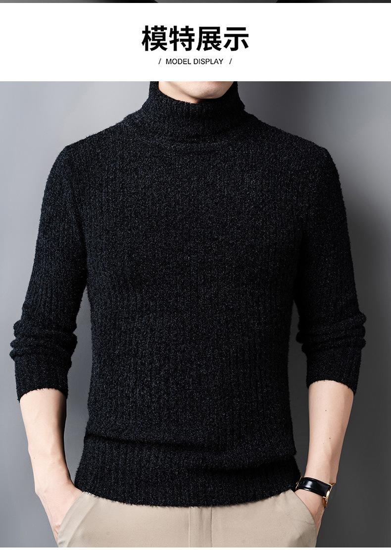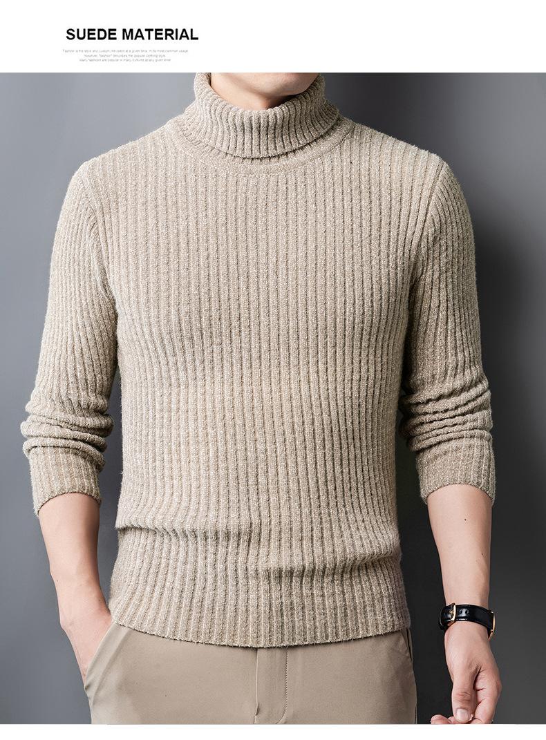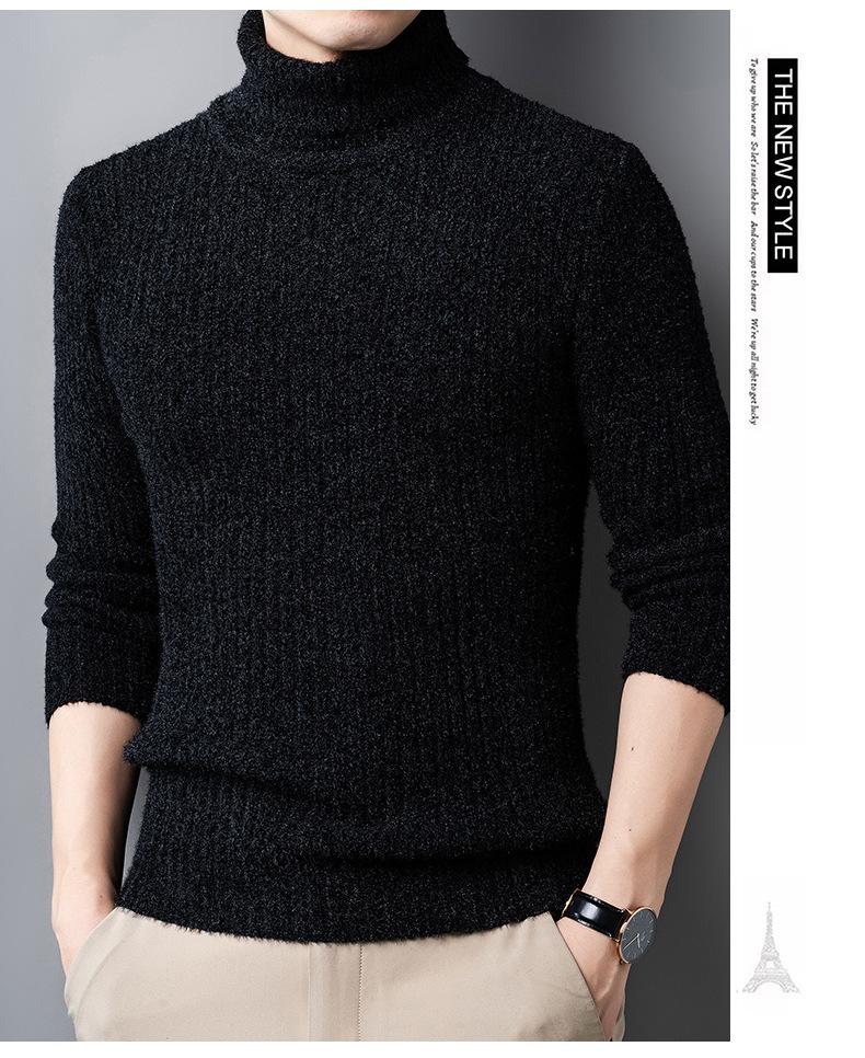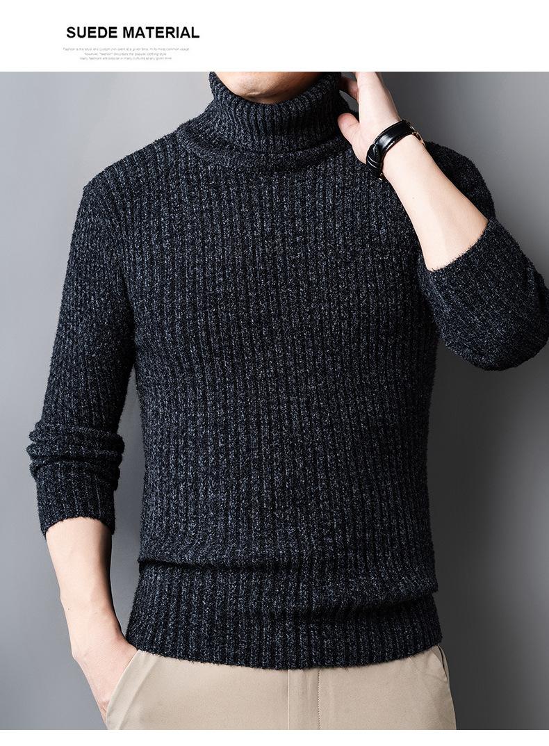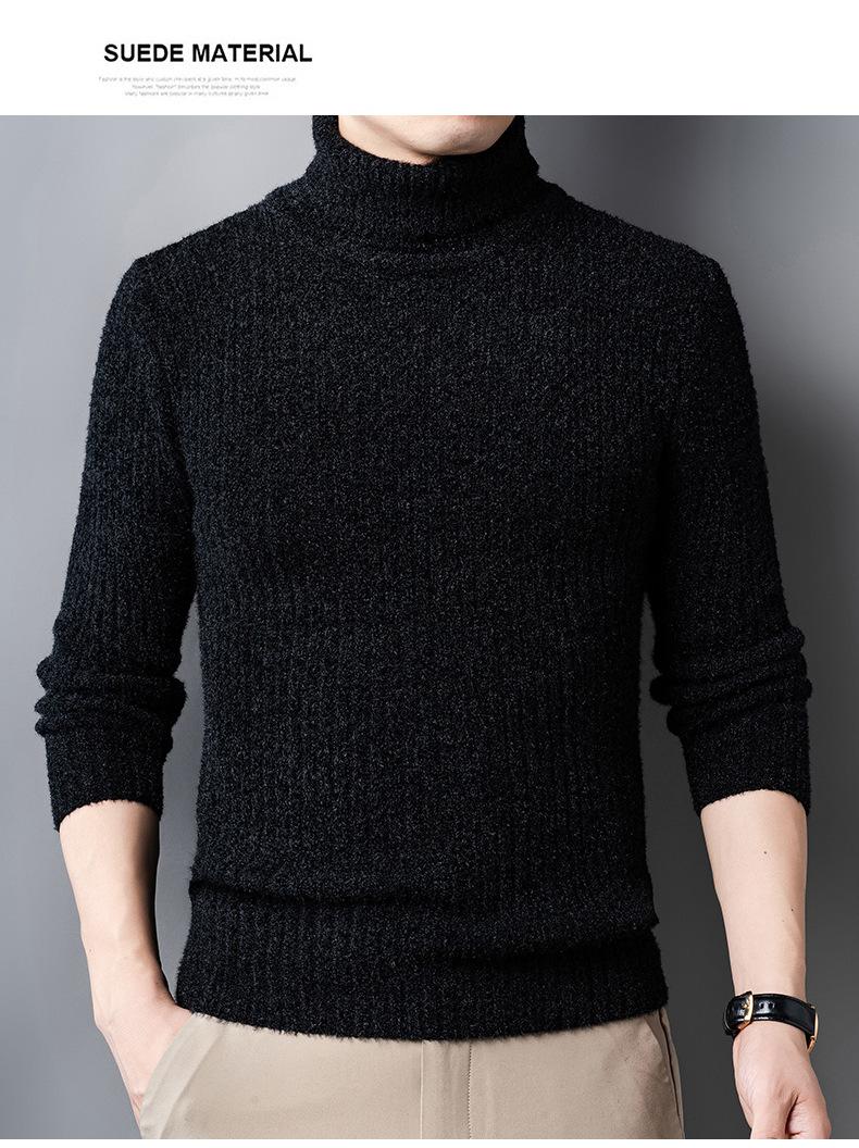 Suéter de Terciopelo de Visón de Alta Gama para Hombre 2025 Otoño e Invierno Pulóver de Cuello Alto Forrado de Felpa Tejido Cálido