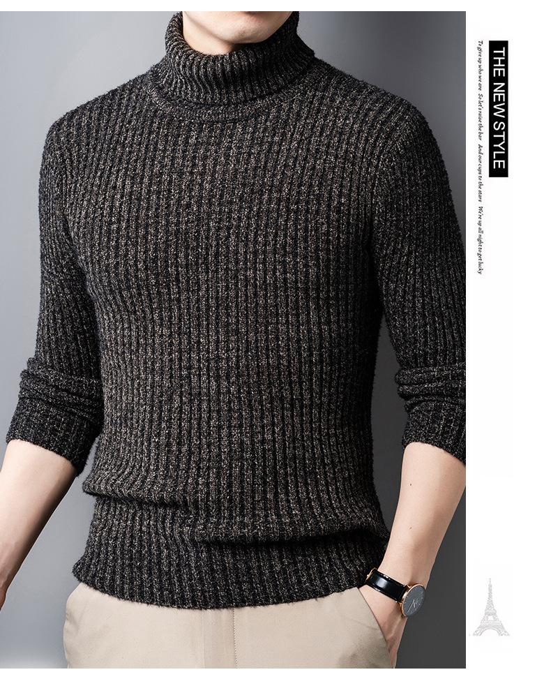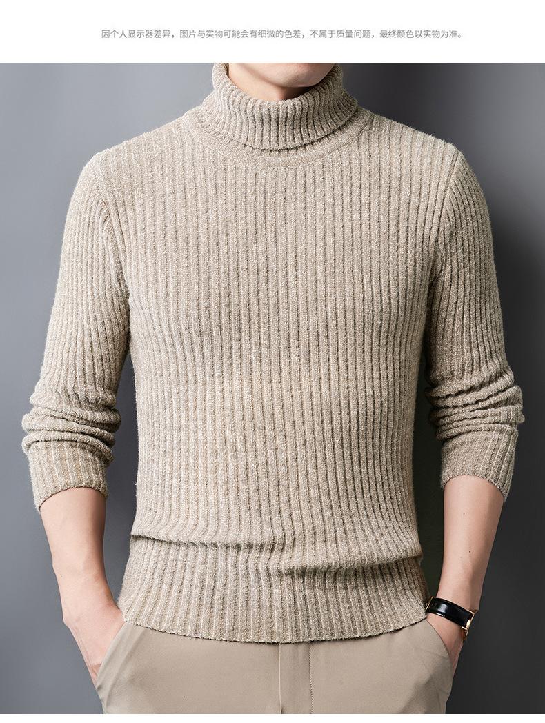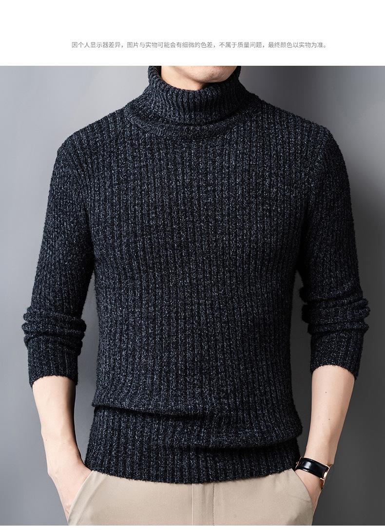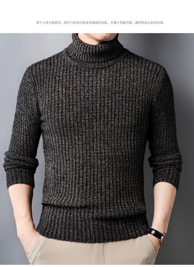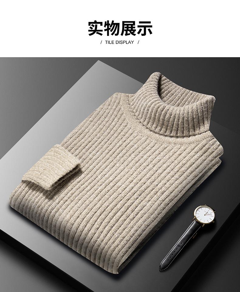 Suéter de Terciopelo de Visón de Alta Gama para Hombre 2025 Otoño e Invierno Pulóver de Cuello Alto Forrado de Felpa Tejido Cálido