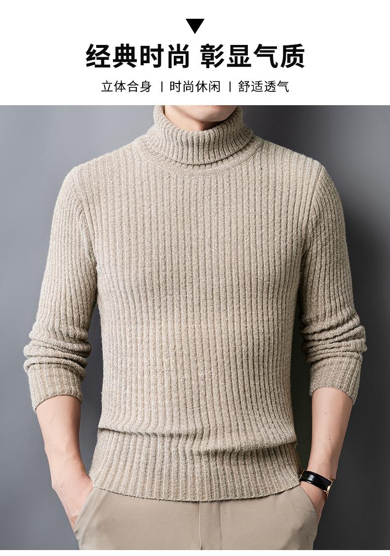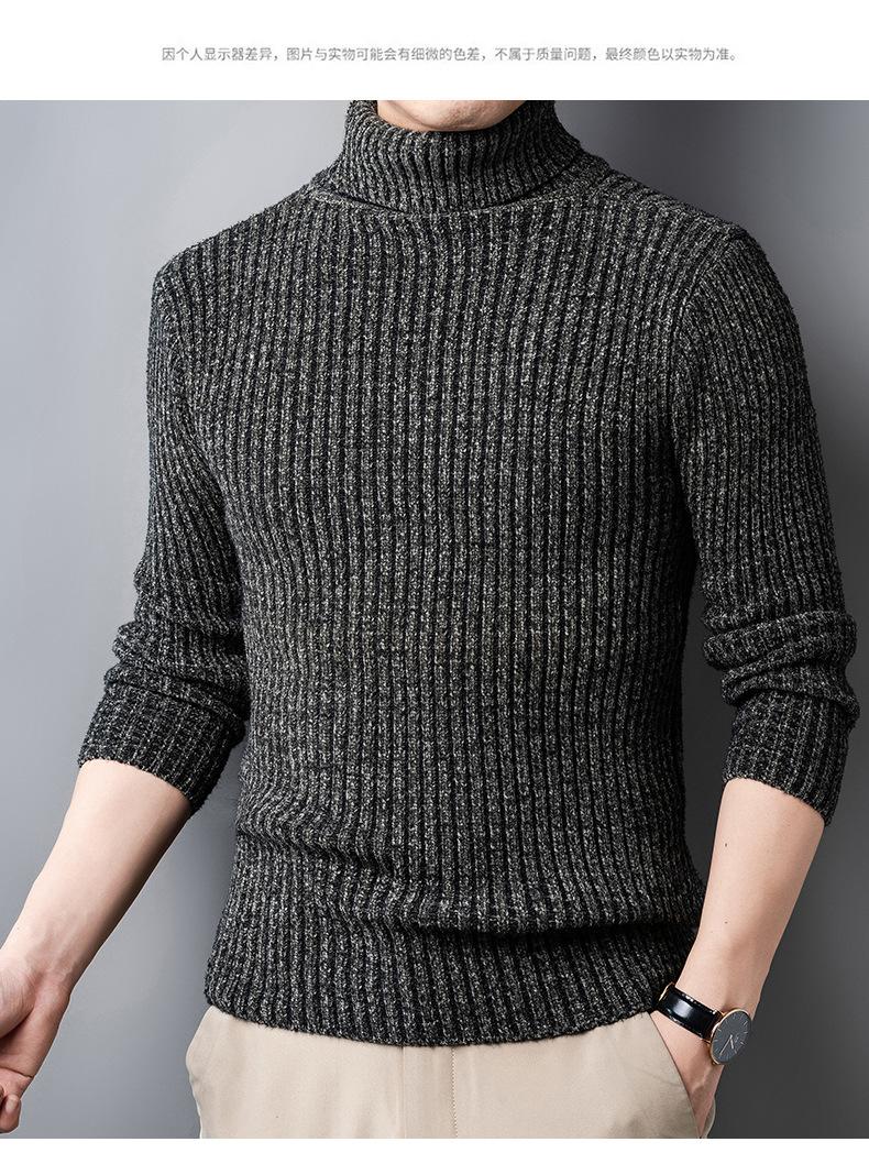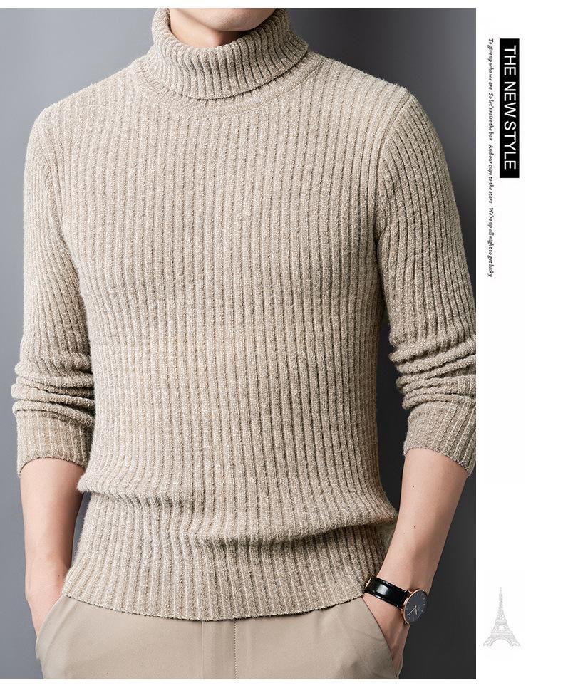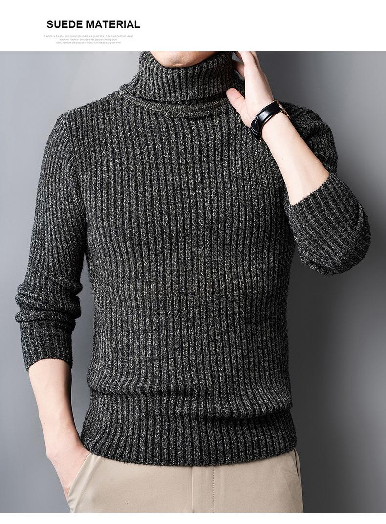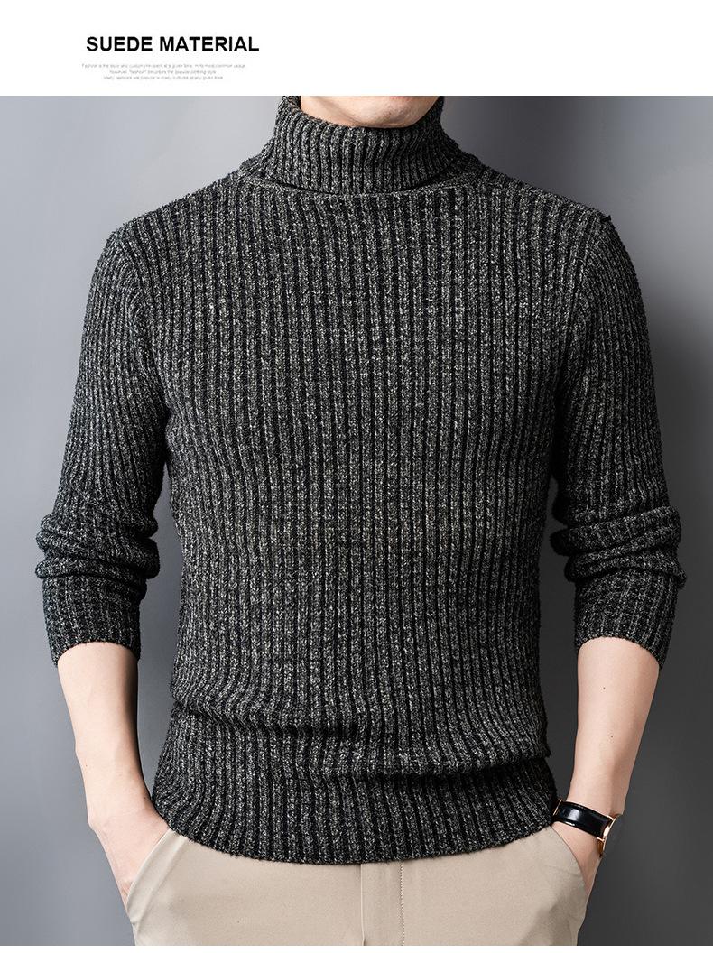 Suéter de Terciopelo de Visón de Alta Gama para Hombre 2025 Otoño e Invierno Pulóver de Cuello Alto Forrado de Felpa Tejido Cálido