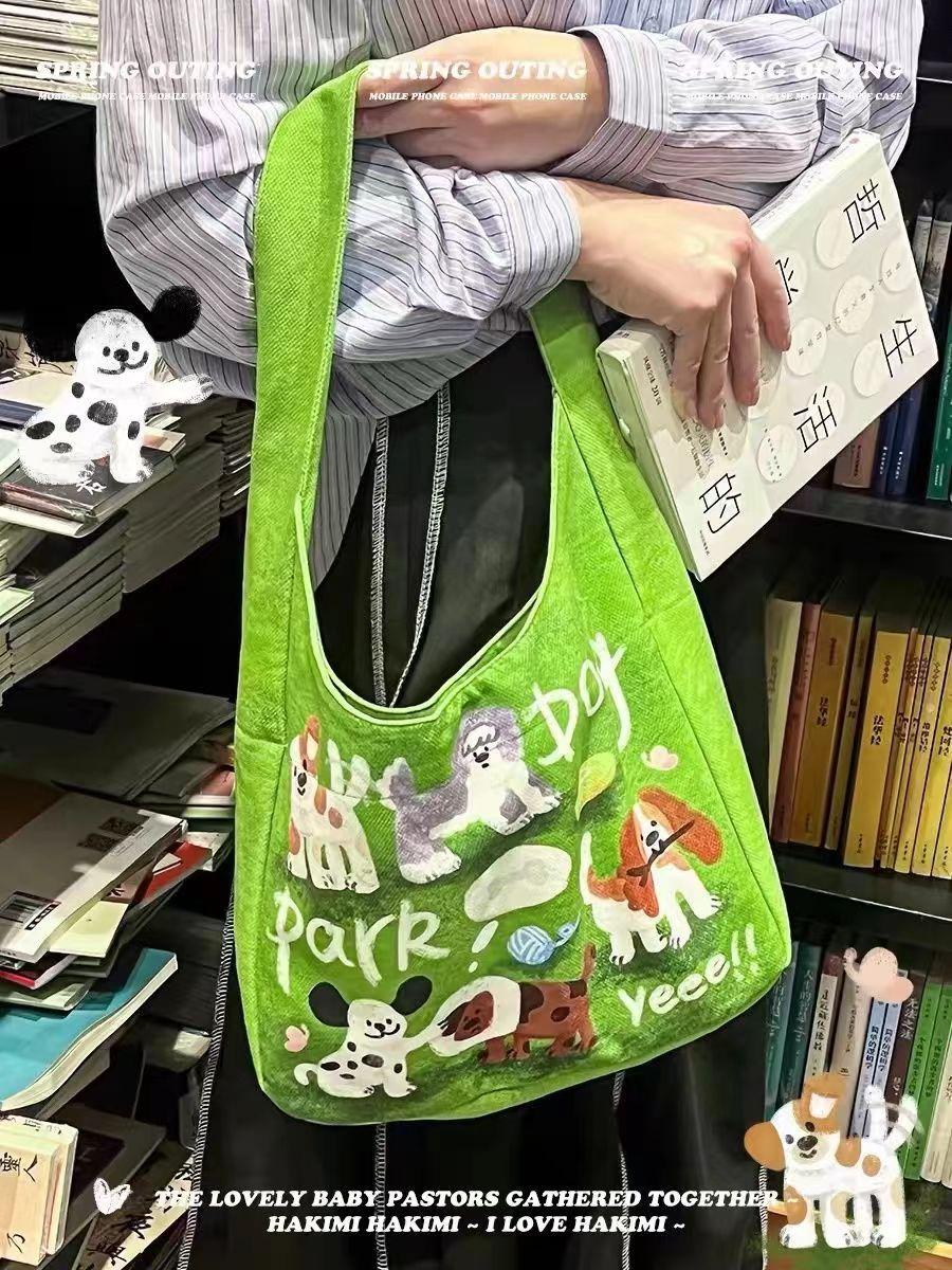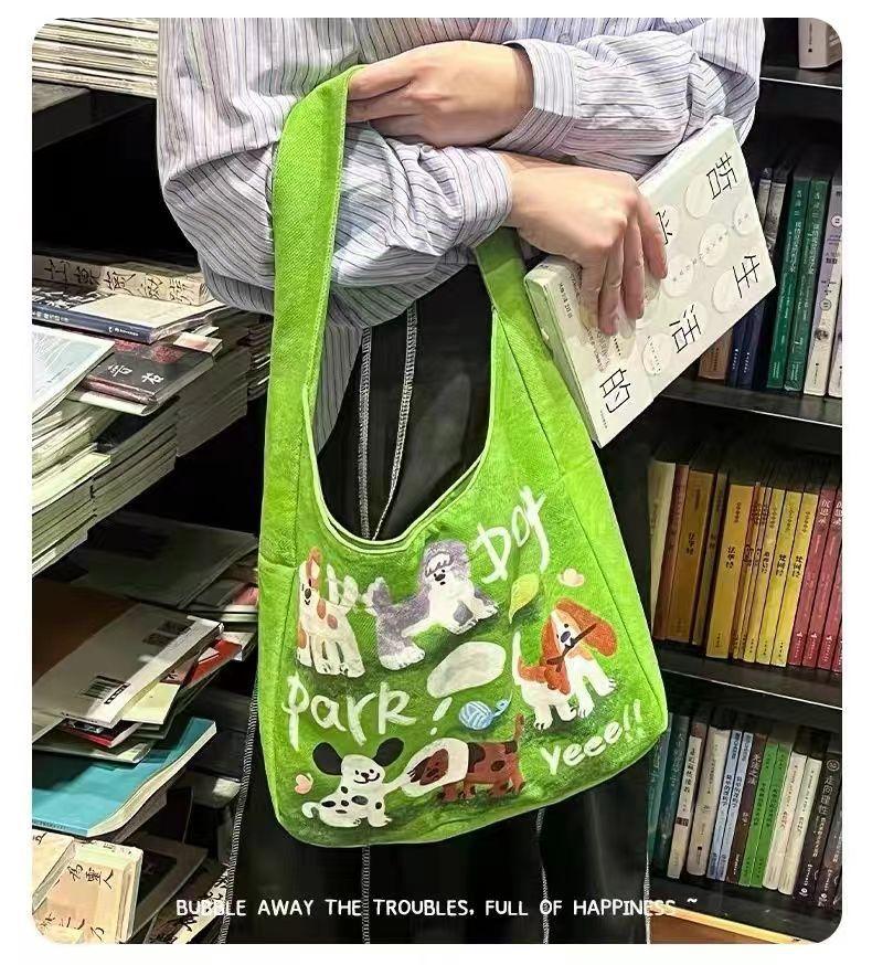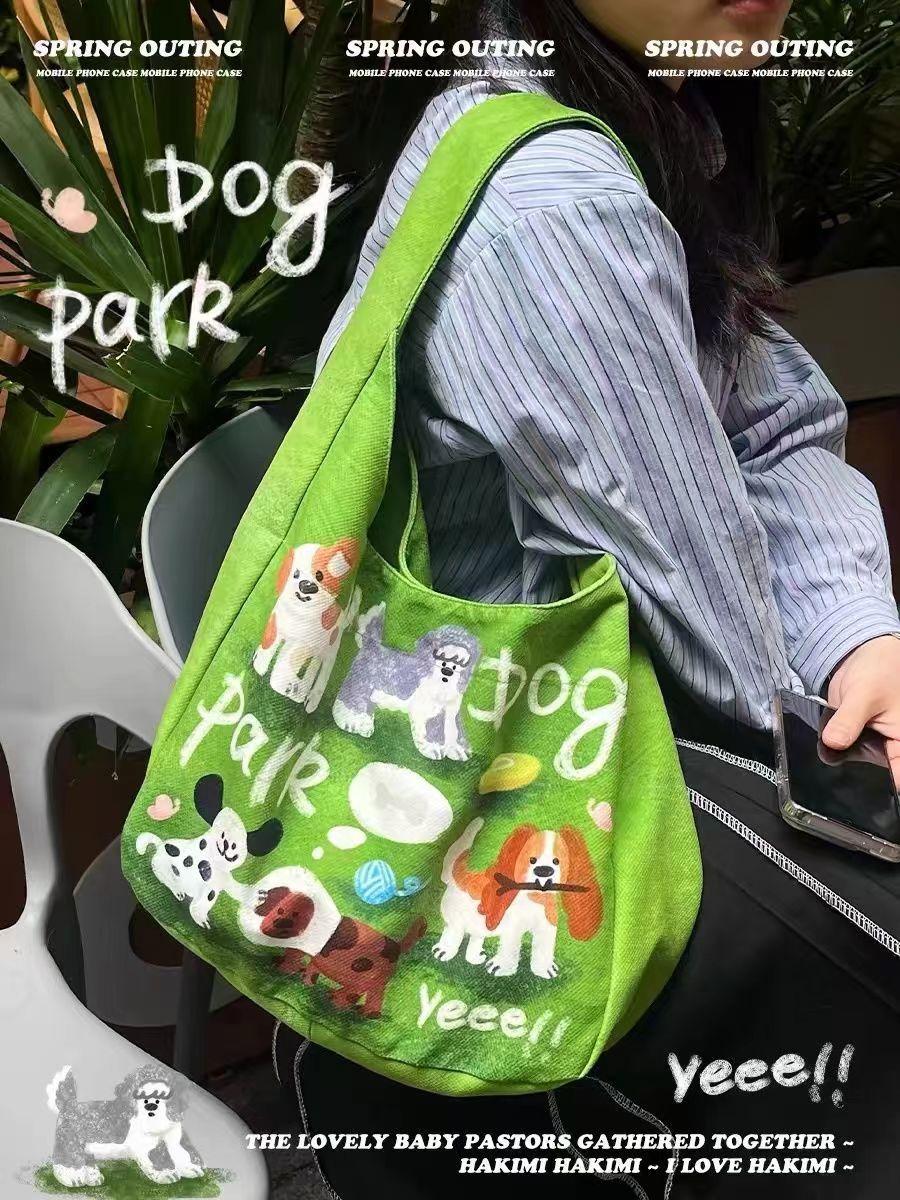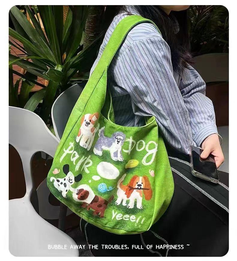 Green Foot Puppy Shoulder Bag, White outing puppy shoulder bag, Small bag