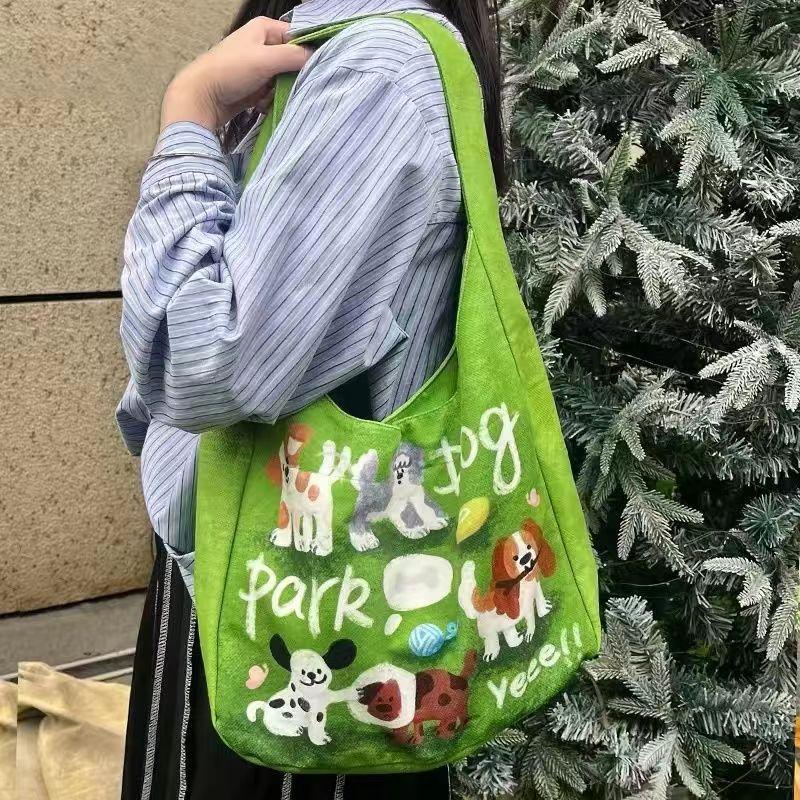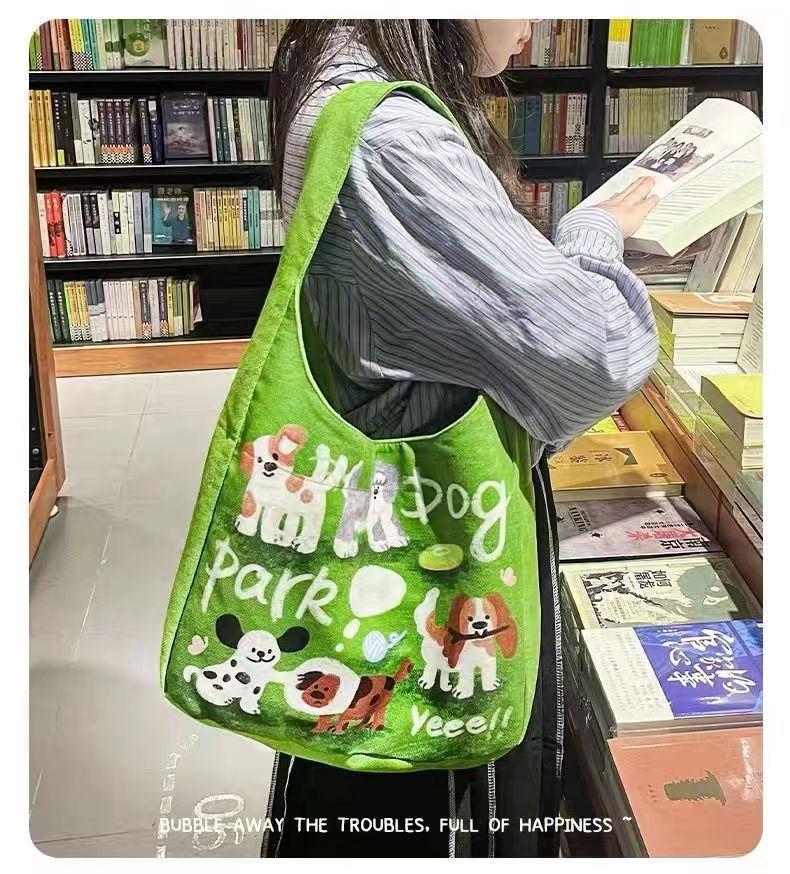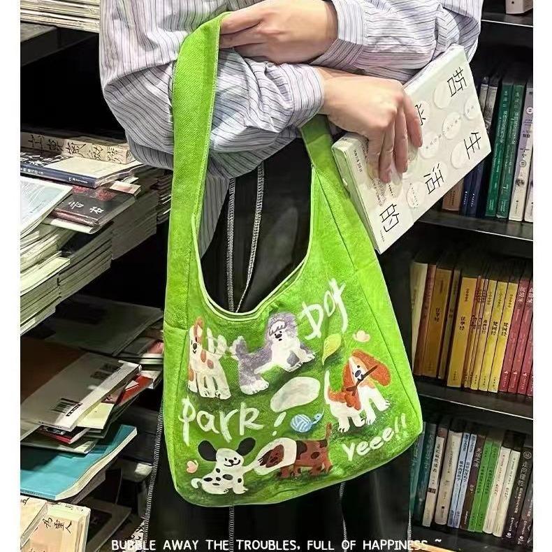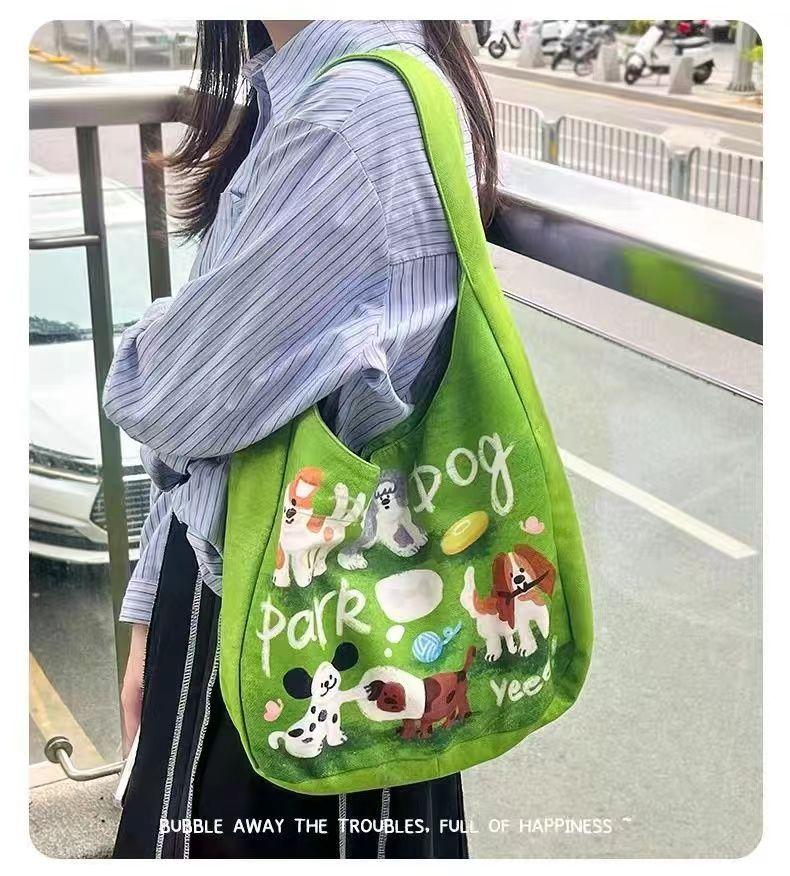 Green Foot Puppy Shoulder Bag, White outing puppy shoulder bag, Small bag