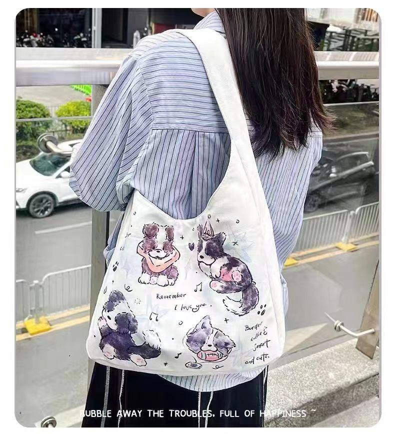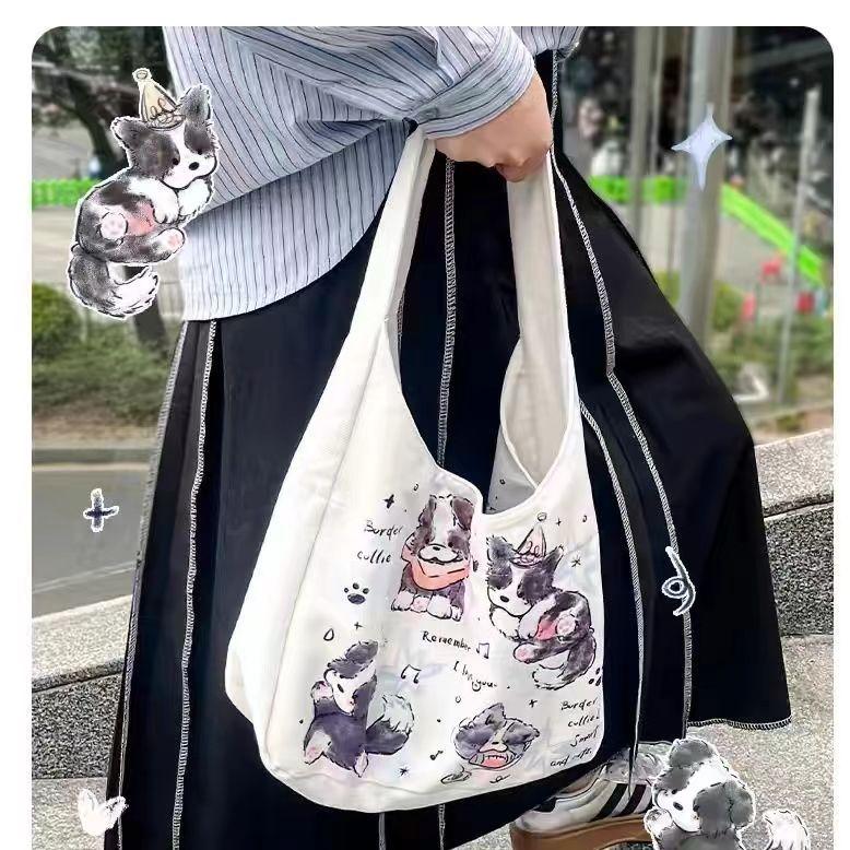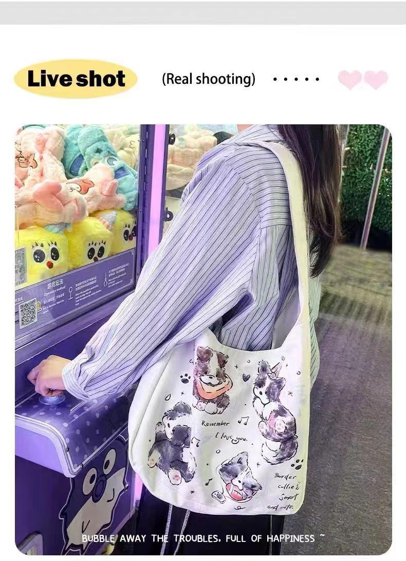 Bolso bandolera dulce con hombro descubierto que combina con todo, bolso de lona de gran capacidad, bolso para estudiantes, clase, viaje, bolso tote, bolso para mujer