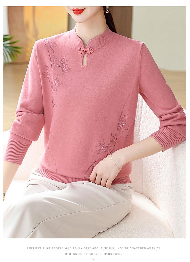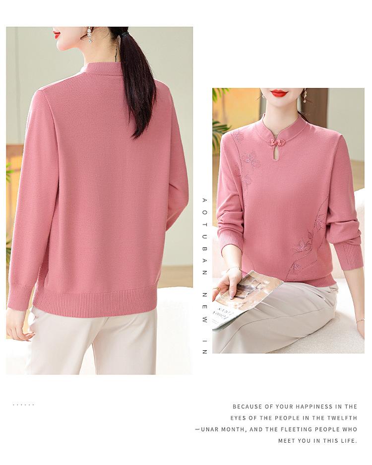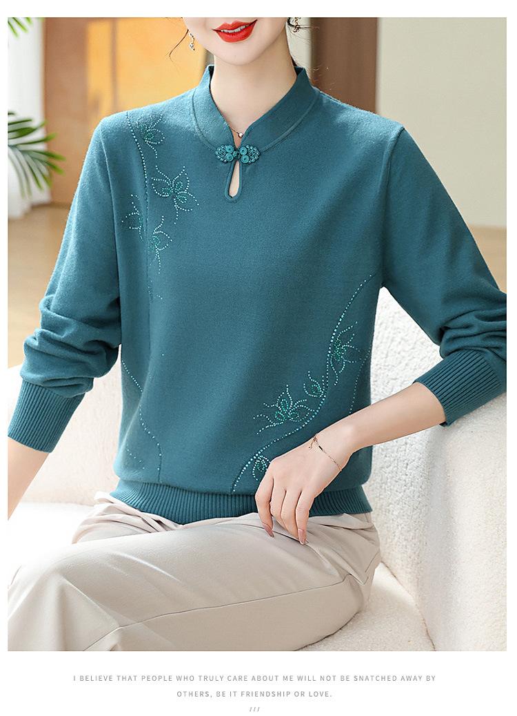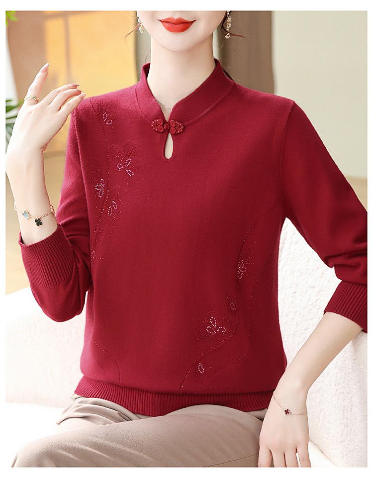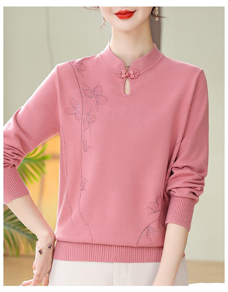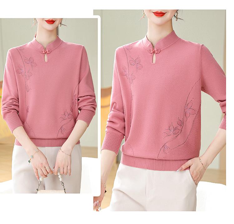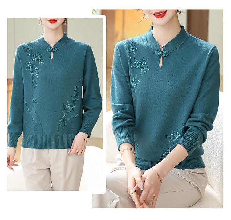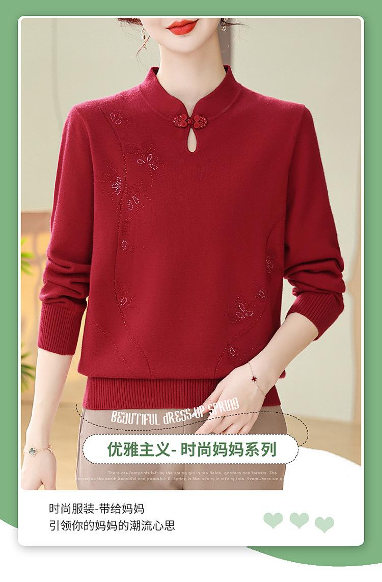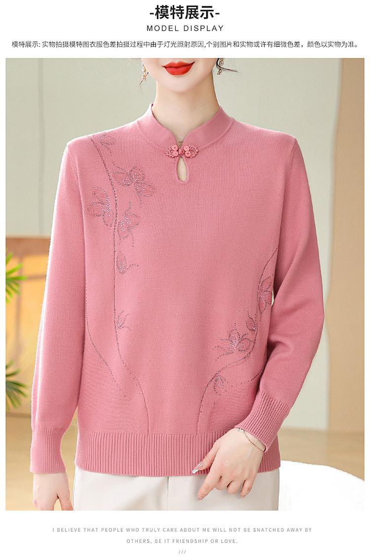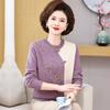 Mamá Primavera y Otoño Nueva Camisa de Punto de Manga Larga para Mujeres de Mediana Edad y Mayores Suéter Elegante de Todo Partido Talla Grande Delgado