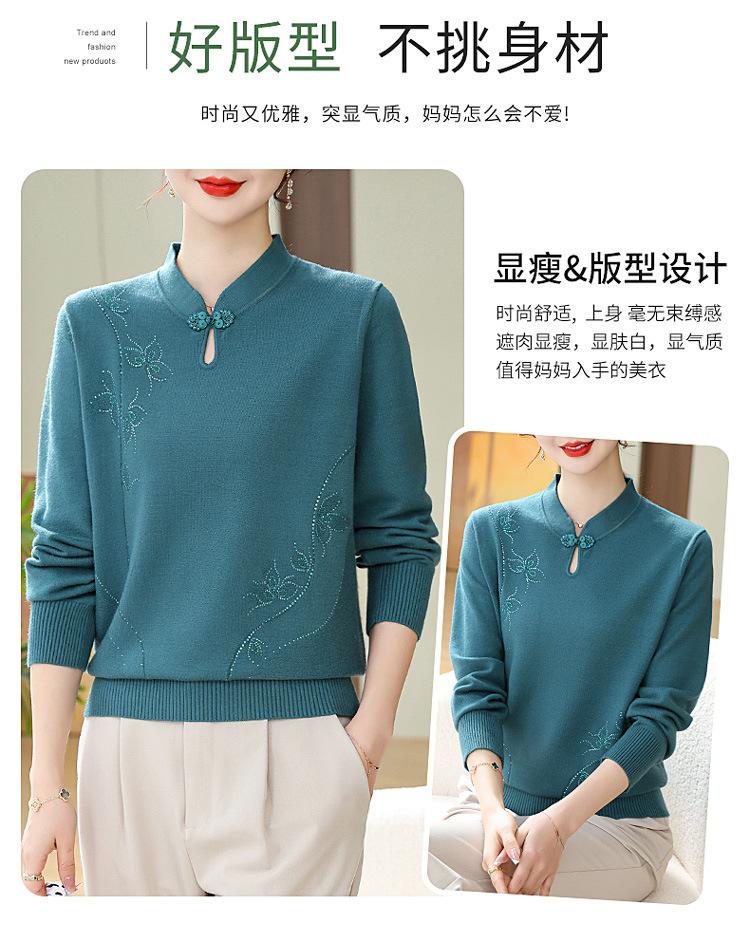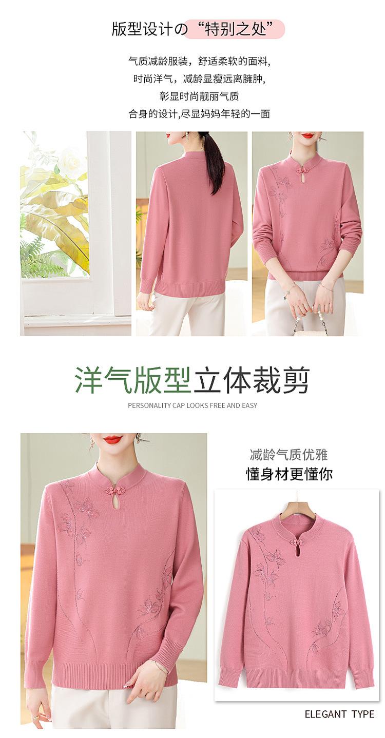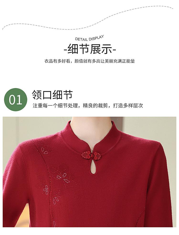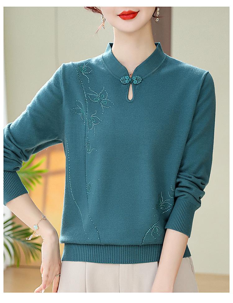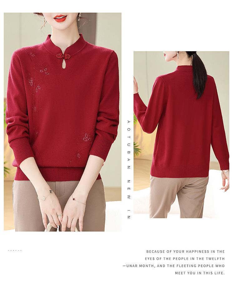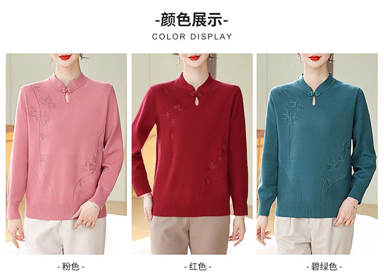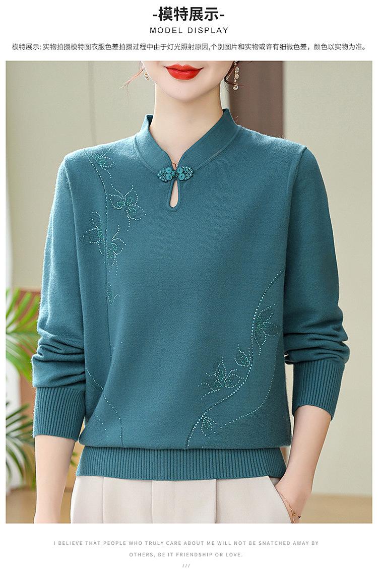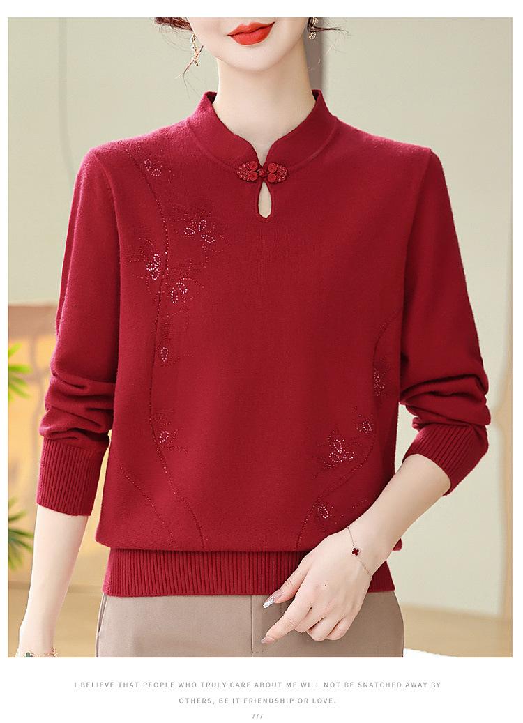 Mamá Primavera y Otoño Nueva Camisa de Punto de Manga Larga para Mujeres de Mediana Edad y Mayores Suéter Elegante de Todo Partido Talla Grande Delgado