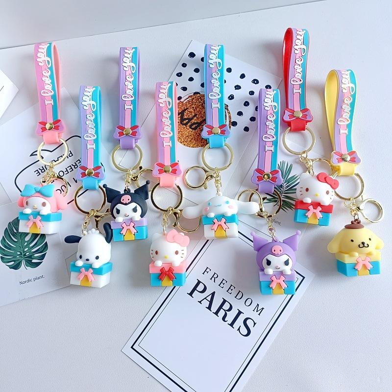 Caja de regalo de dibujos animados Sanrio llavero de dibujos animados colgante muñeca llavero lindo pareja bolsa regalo al por mayor