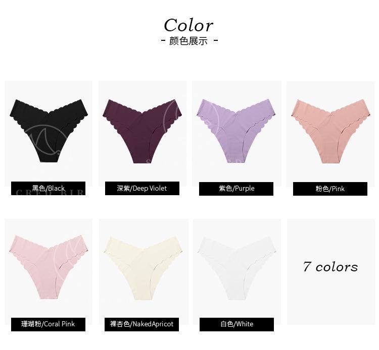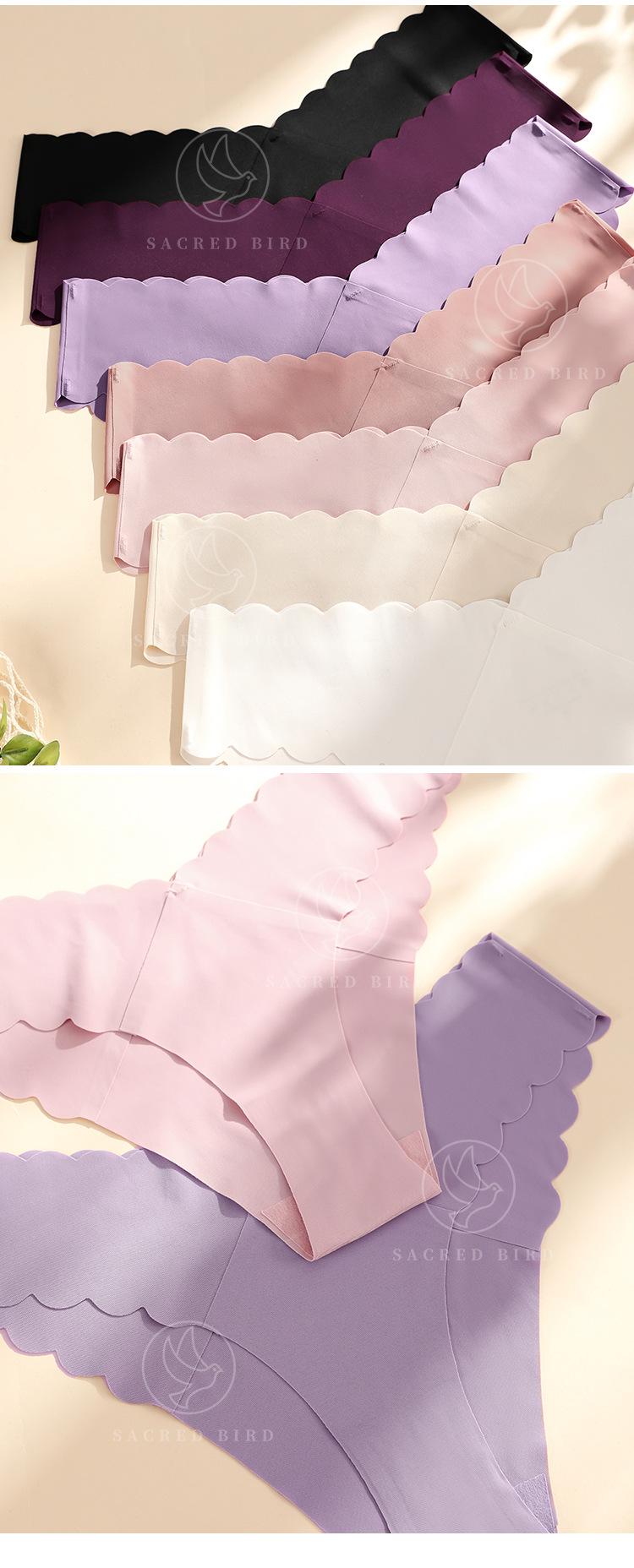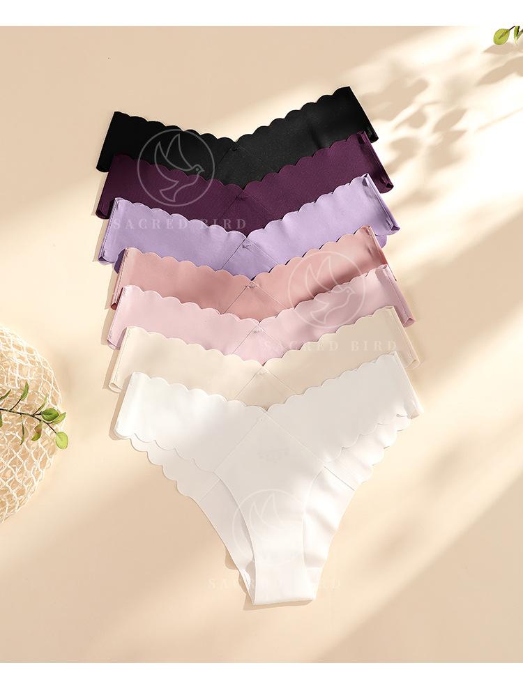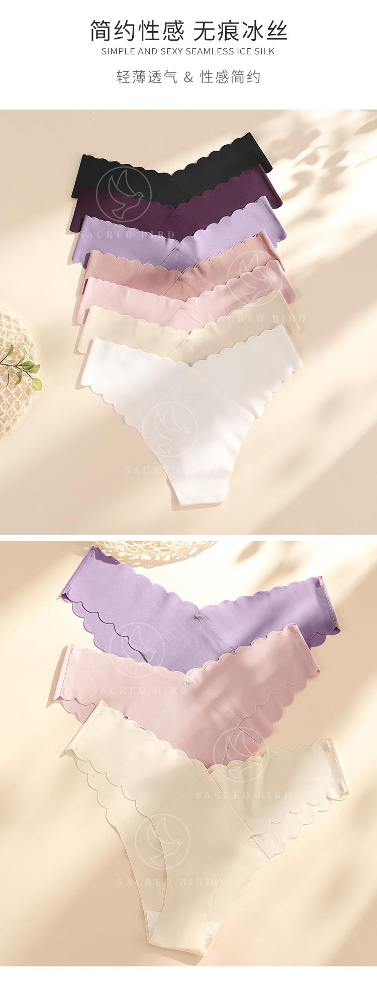 Braguitas de mujer de cintura baja con borde ondulado, de una pieza, sin costuras, de seda helada, de secado rápido, con forma de V, cómodas y de algodón puro.