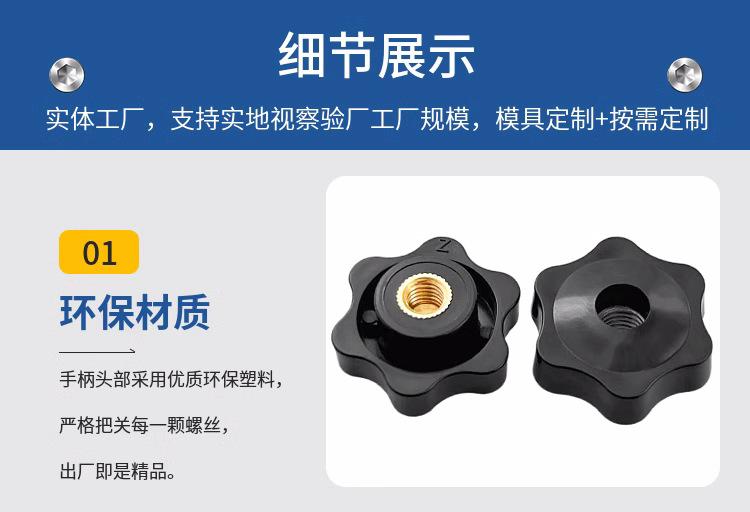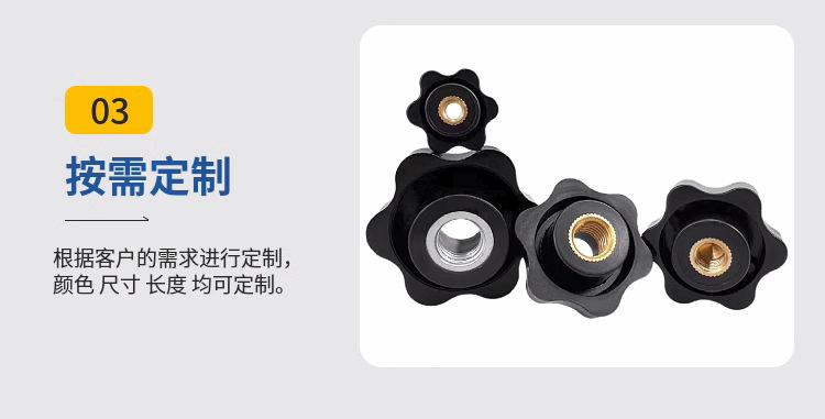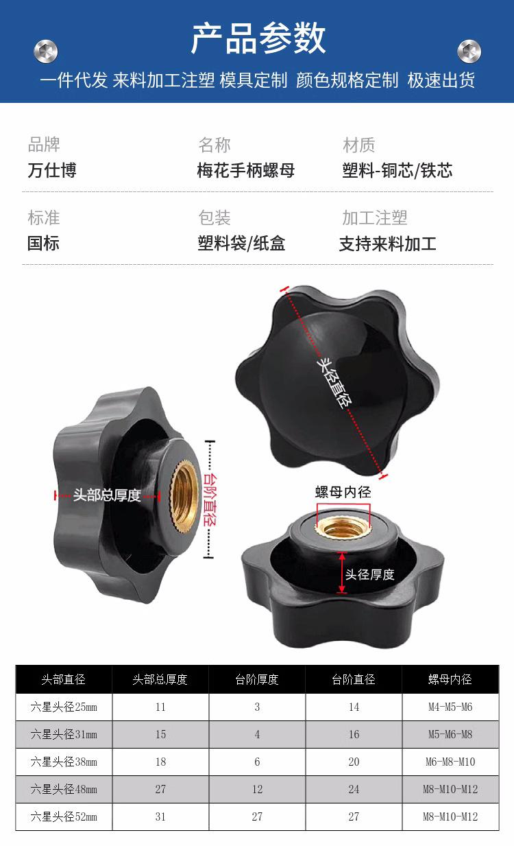 Tuerca de mango Torx, mango de plástico en forma de estrella, perilla, núcleo de hierro, tuerca de orificio pasante, cabeza de goma, tornillo de mano, núcleo de cobre, tuerca de orificio ciego