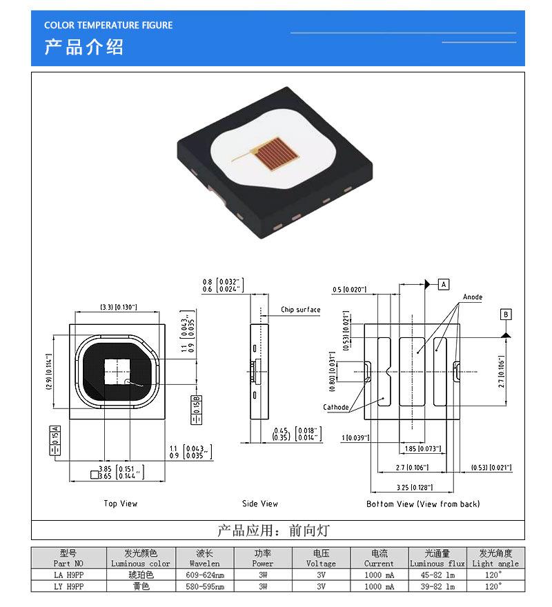 Cuentas de lámpara OSRAM 3838 luz amarilla luz ámbar 3v3w coche motocicleta luz de freno parche cuentas de lámpara led
