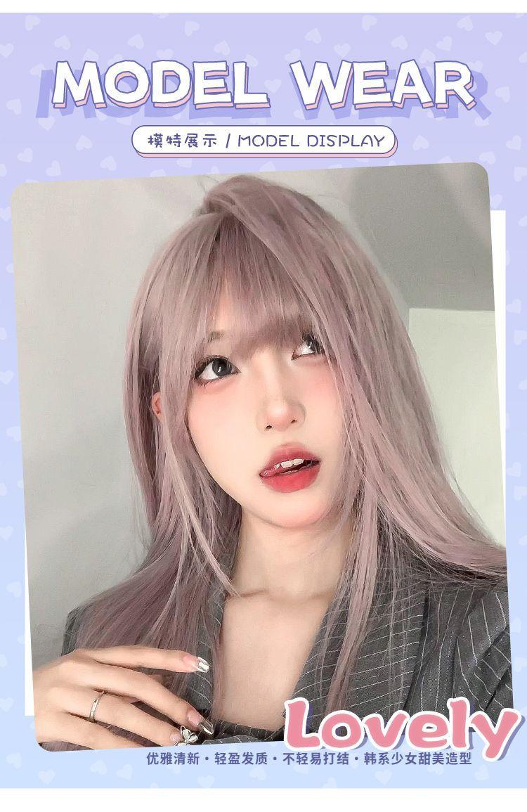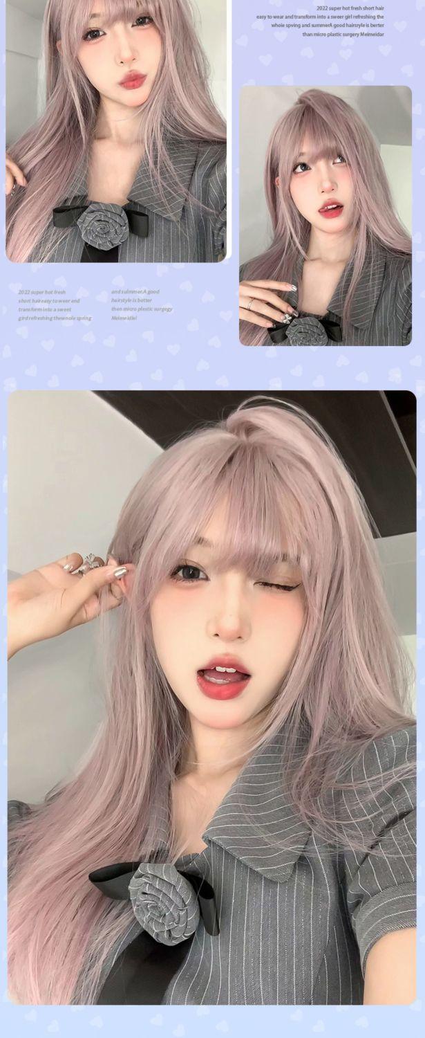 Peluca para Mujer Cabello Largo Liso Cubierta Completa de la Cabeza Cabello de Imitación Natural Moda Popular en Internet Lolita Gris Púrpura Cubierta Completa de la Parte Superior