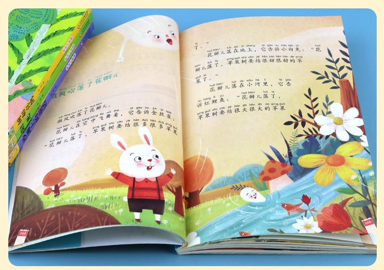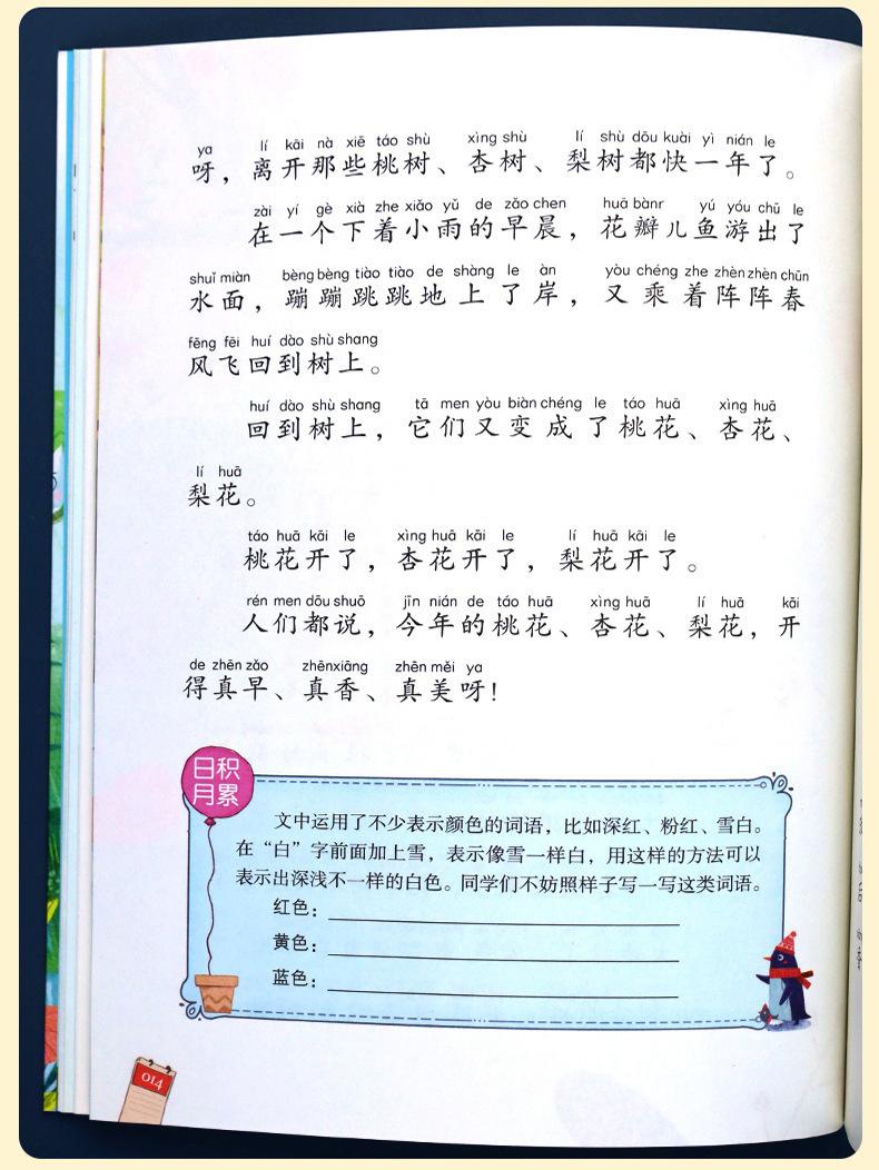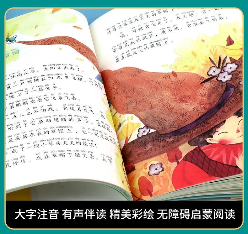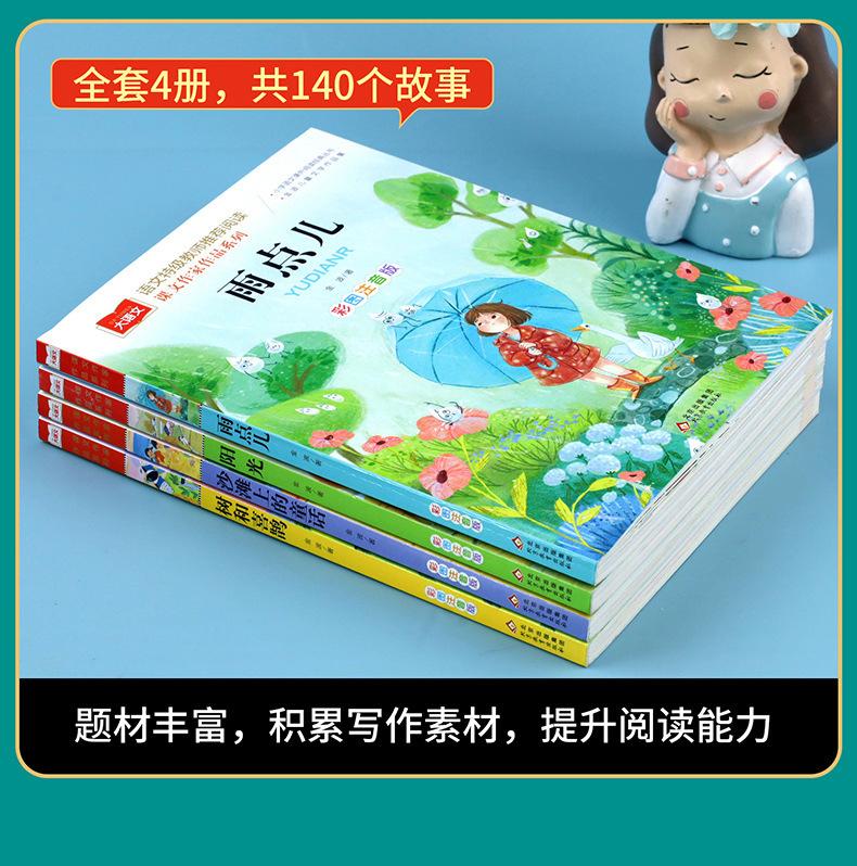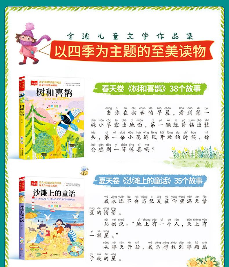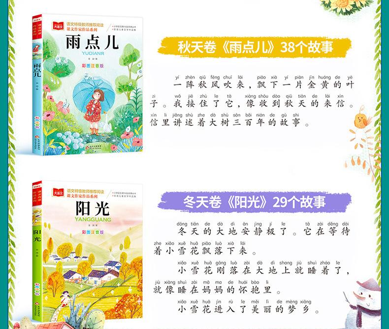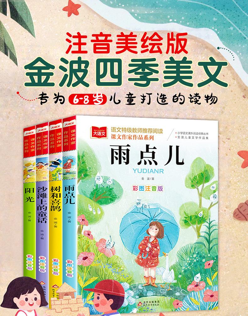 Jinbo Primavera, Verano, Otoño e Invierno Hermosos Ensayos con Imágenes a Color Versión Fonética Cuento de Hadas del Árbol y la Urraca Gota de Lluvia Sol en la Playa