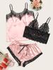Suministro Transfronterizo Exportación Europea y Americana Lencería Sexy Lencería Sexy con Liguero para Mujer Conjunto de Tres Piezas de Lunares Rosados