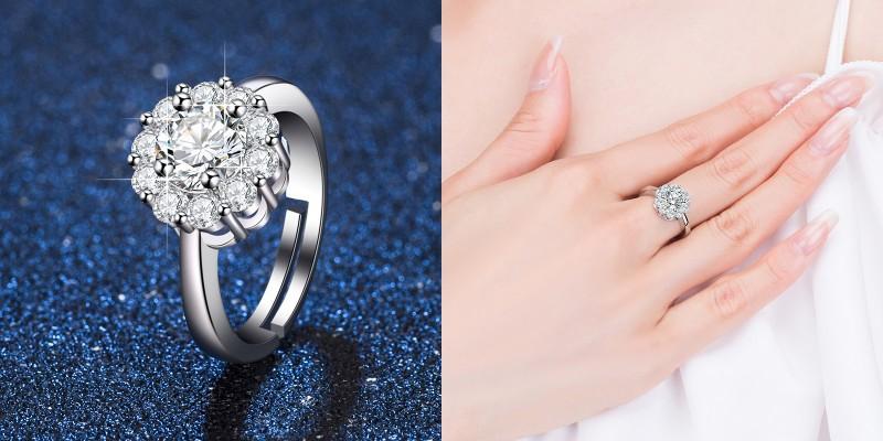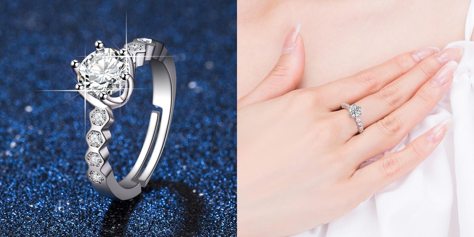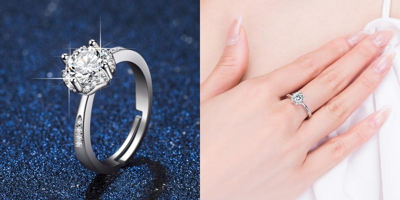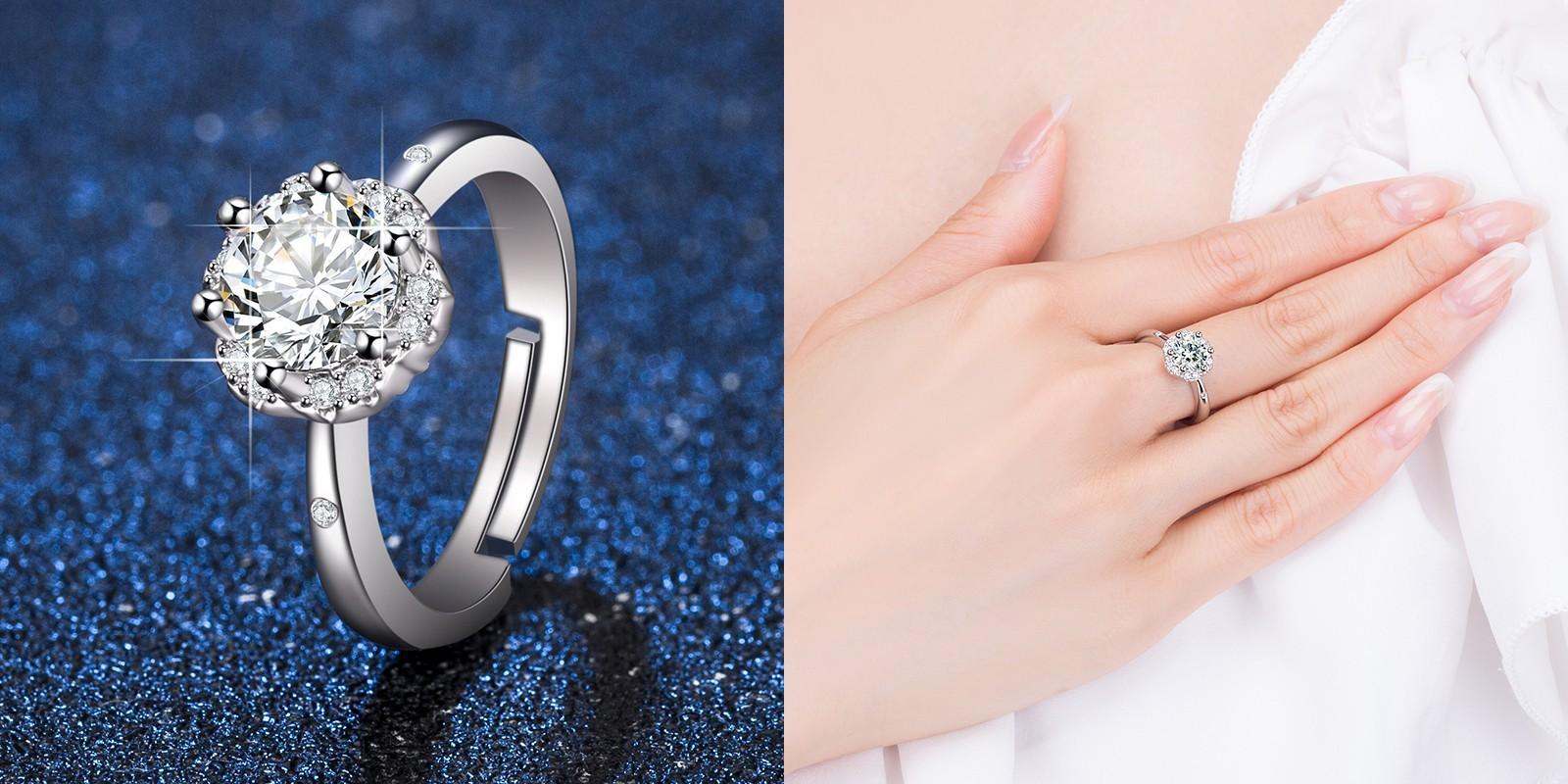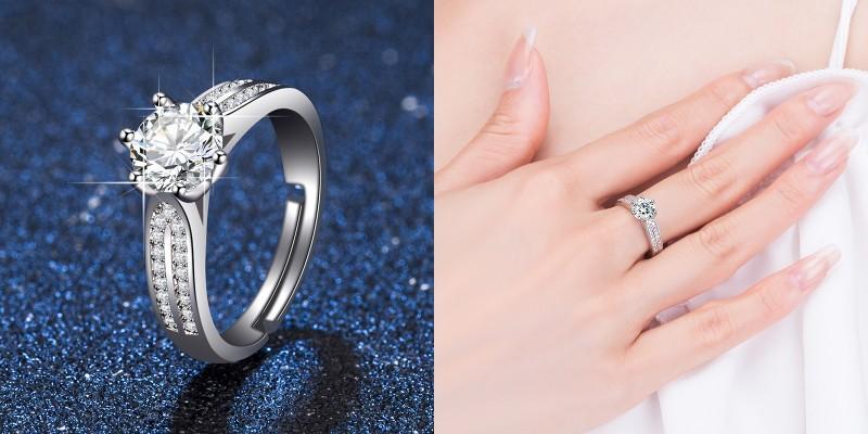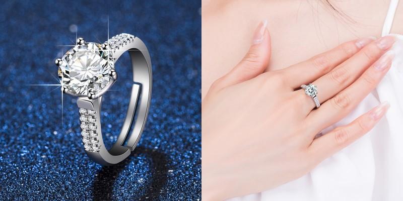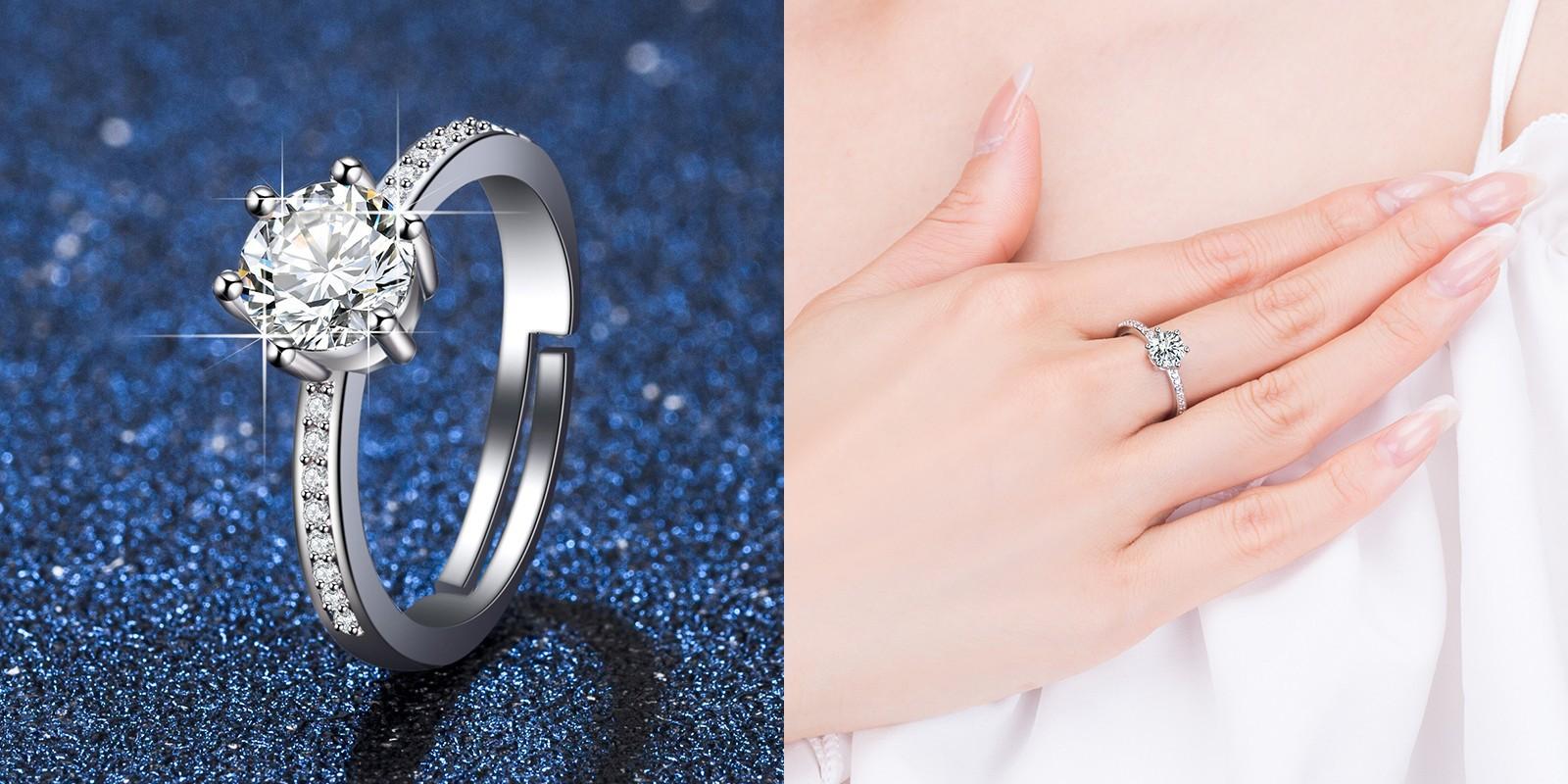 Anillo de moissanita de simulación en vivo para mujer, de 1 quilate y seis garras, de Red Book Net, de mano rápida transfronteriza, venta al por mayor de fábrica
