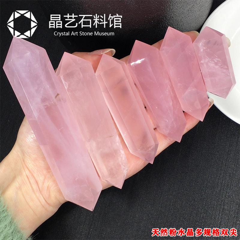 Columna de cristal de doble punta de cristal rosa natural, decoración de piedra original de cristal rosa natural, directa de fábrica, decoración de columna de cristal hexagonal