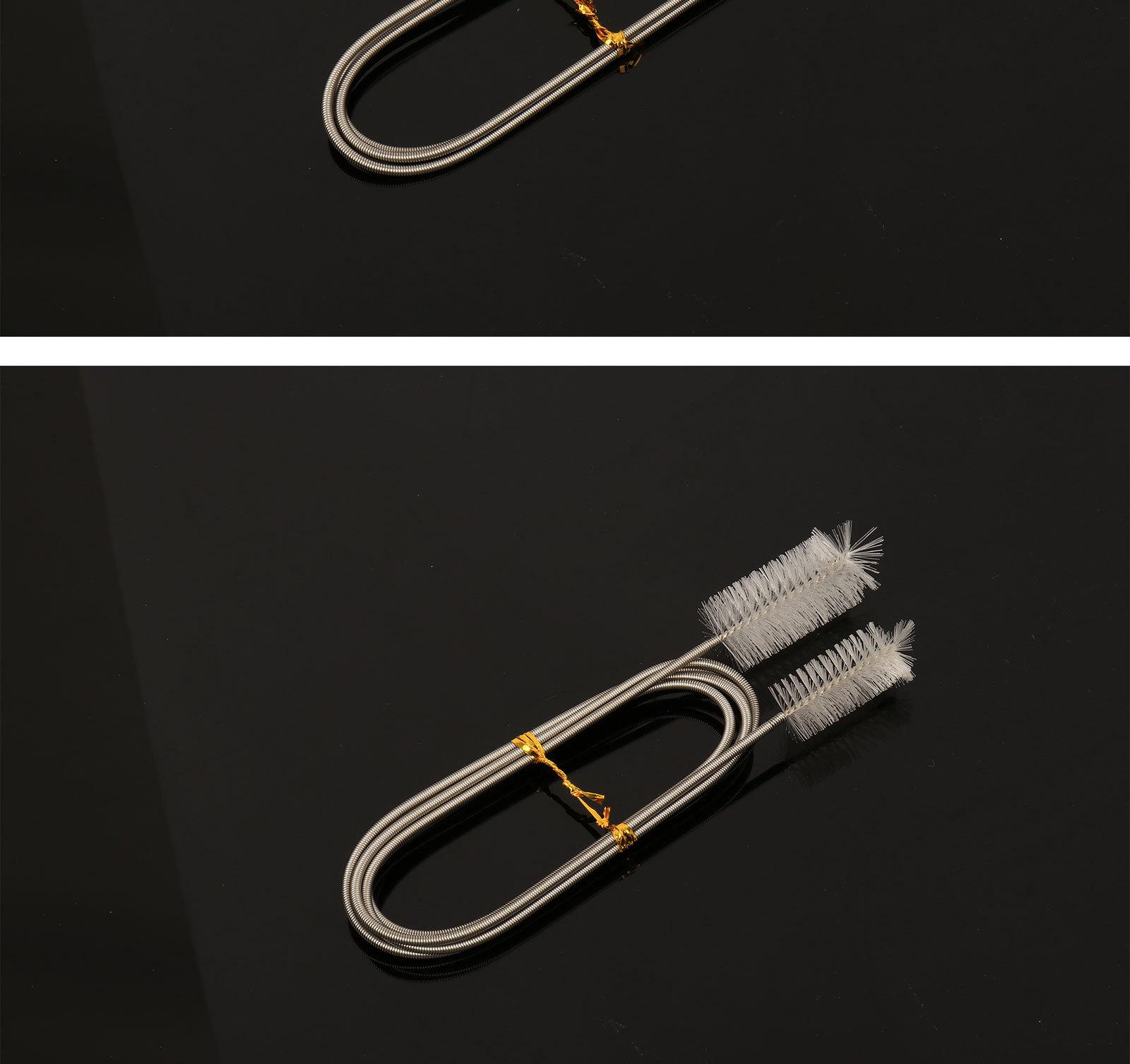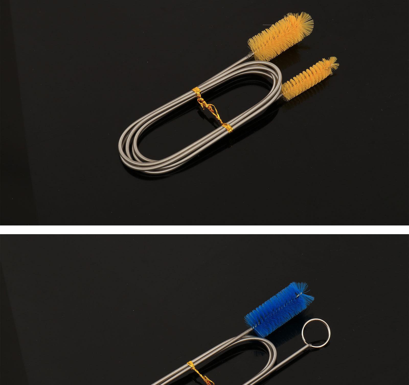 Cepillo de resorte para acuario, de acero inoxidable, con doble cabezal, para limpieza de paredes interiores de tubos de plástico y vidrio.