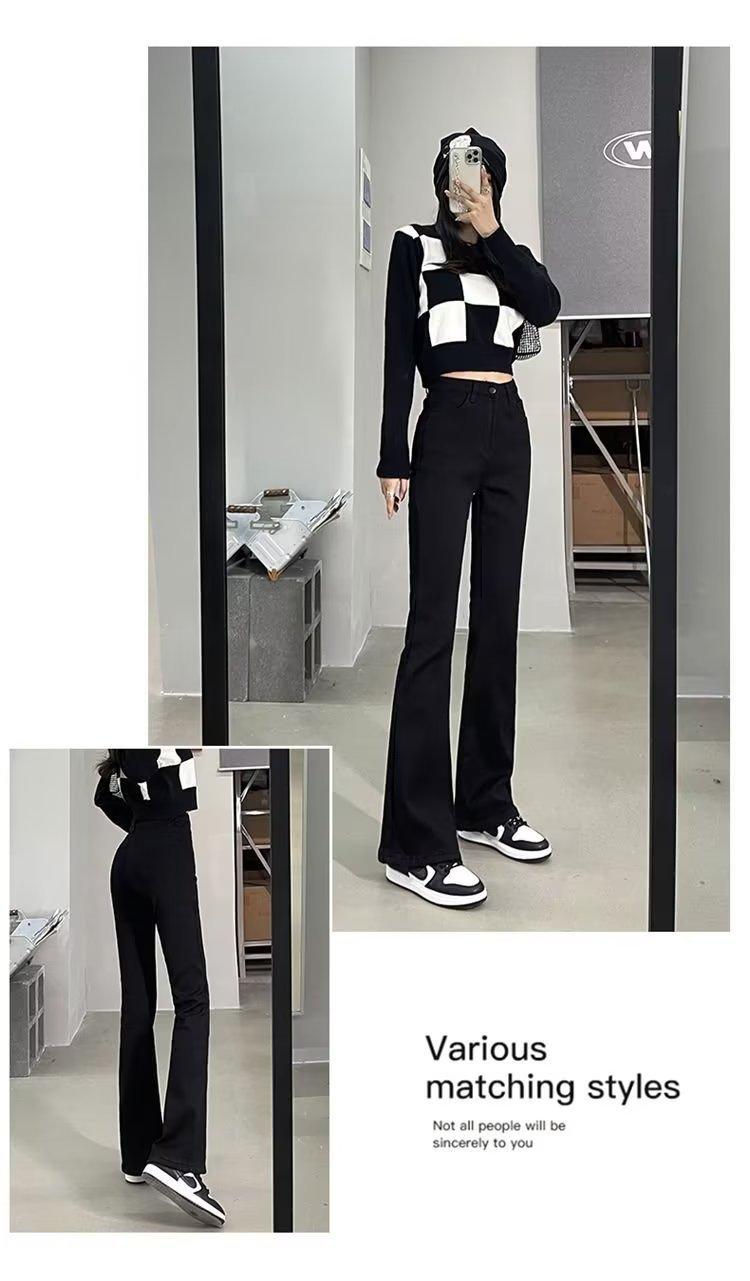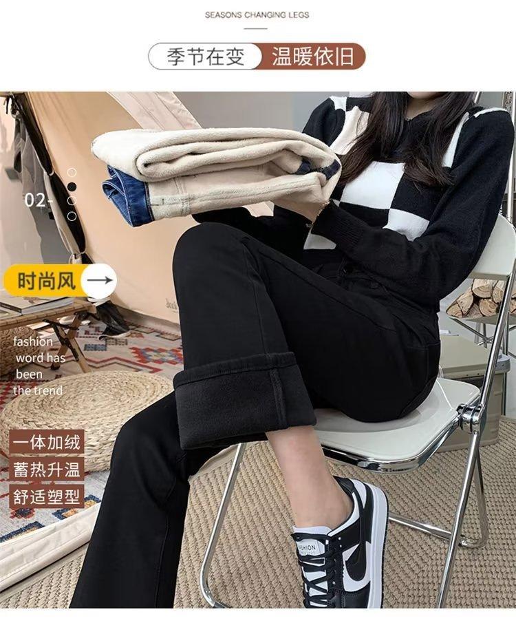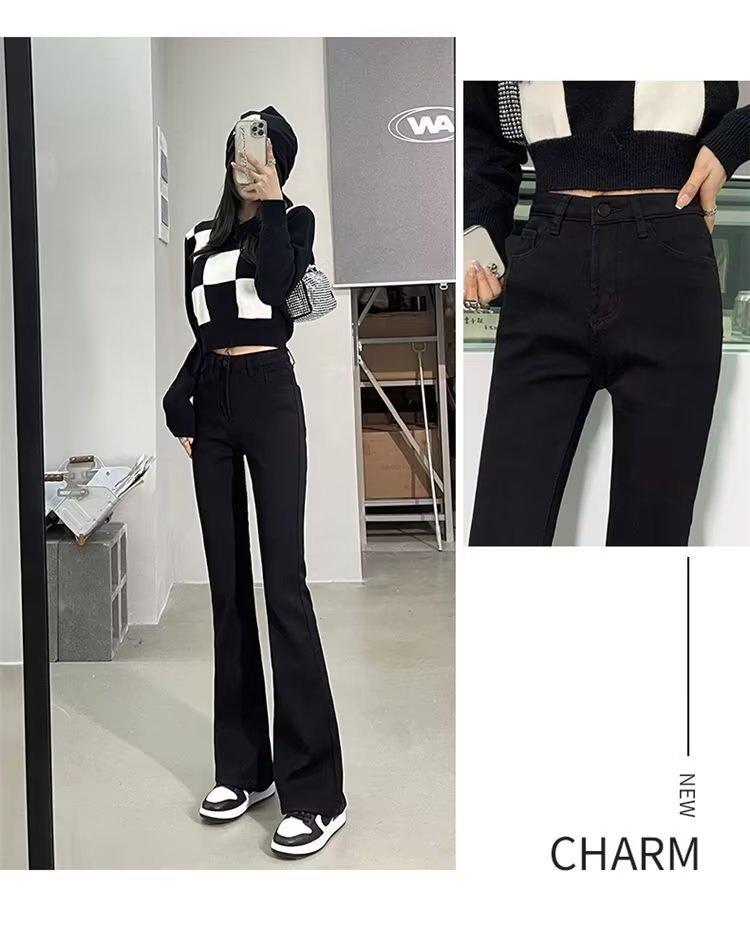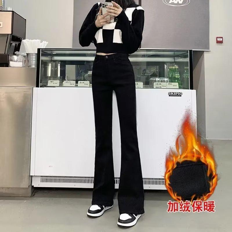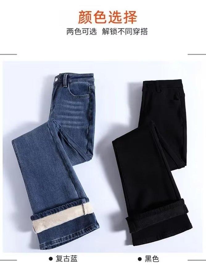 Jeans microacampanados para mujer cintura alta 2023 nuevo otoño e invierno forrado de vellón adelgazante alto recto suelto pantalones mop al por mayor