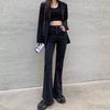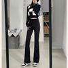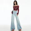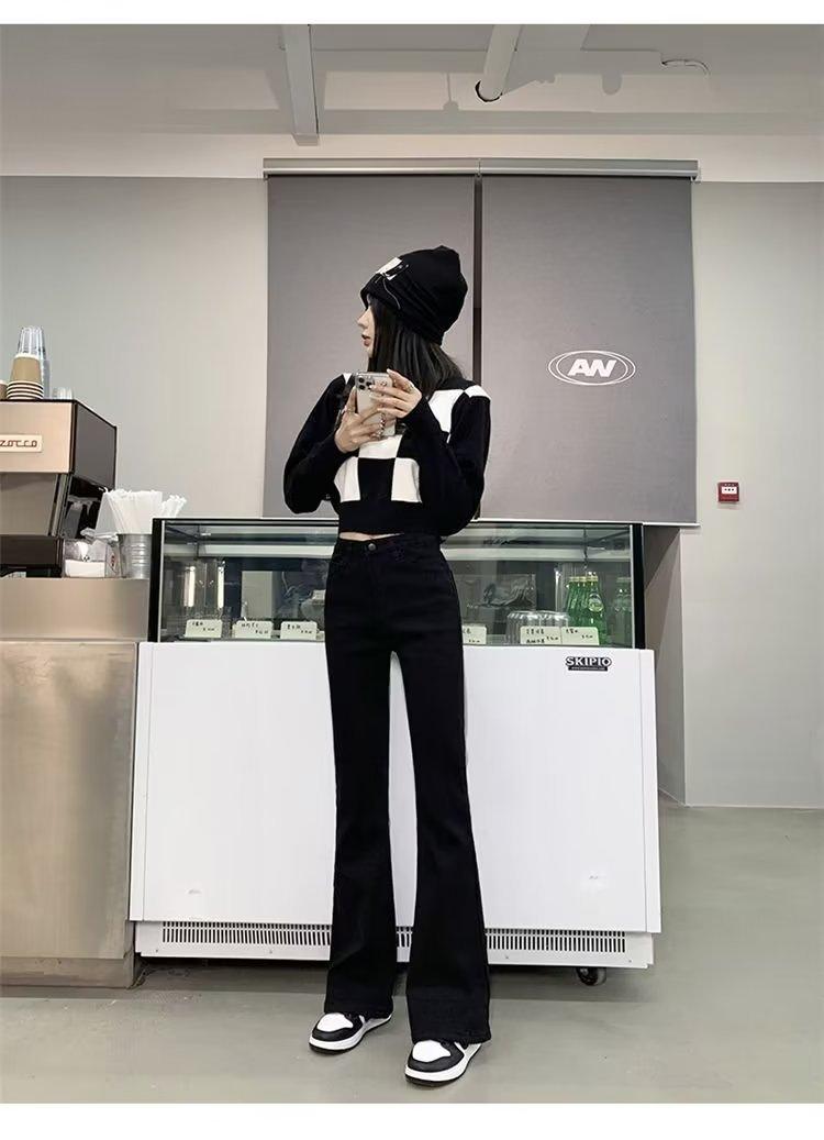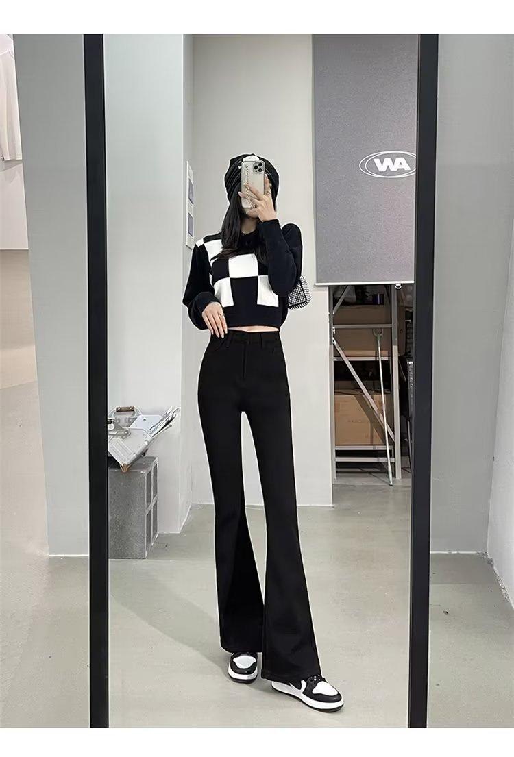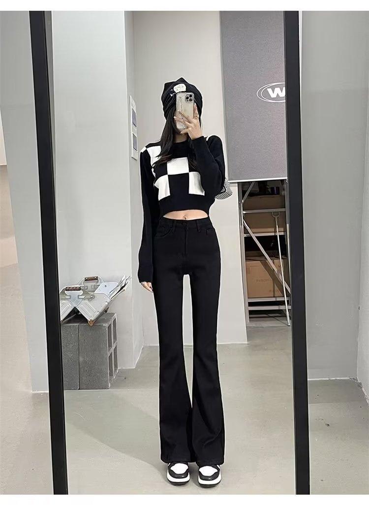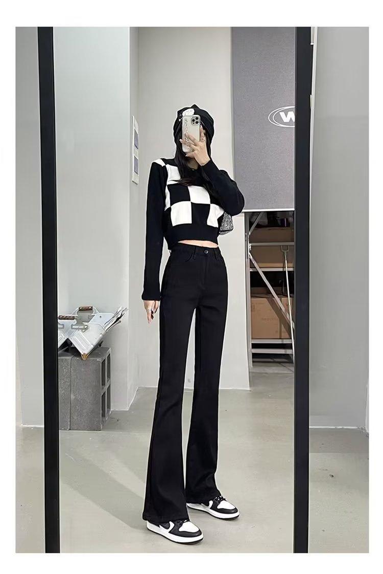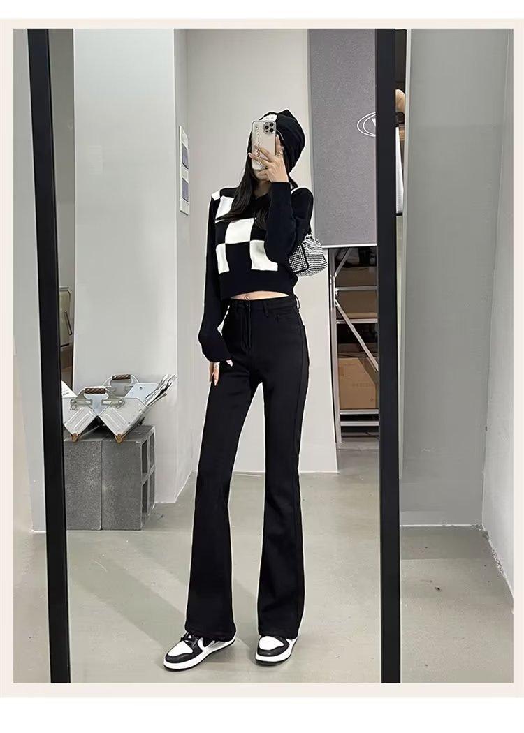 Jeans microacampanados para mujer cintura alta 2023 nuevo otoño e invierno forrado de vellón adelgazante alto recto suelto pantalones mop al por mayor