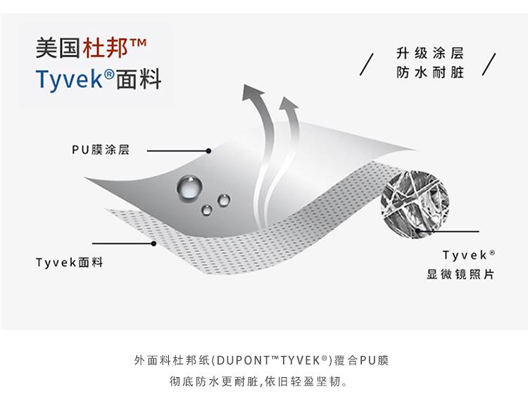 Material: Papel DuPont laminado con película de PE, se vuelve más suave con el uso