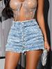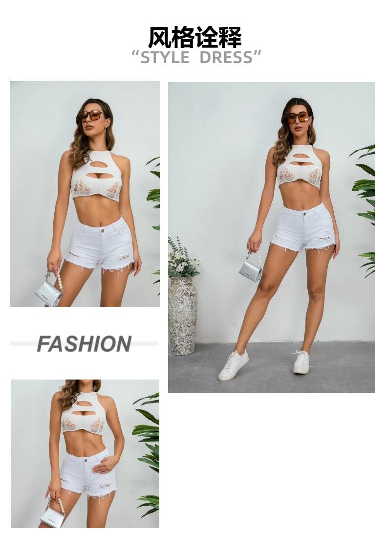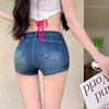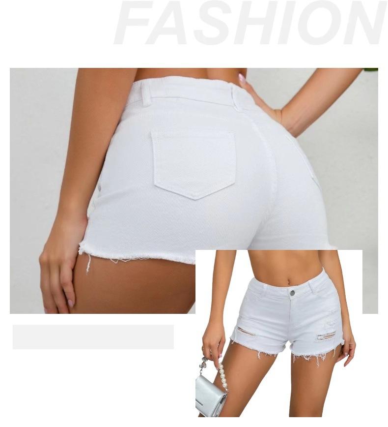 Verano estilo europeo y americano chica caliente mezclilla pantalones súper cortos Sexy Ajustado ajustado A- línea deshilachados rotos color claro pantalones calientes para mujer