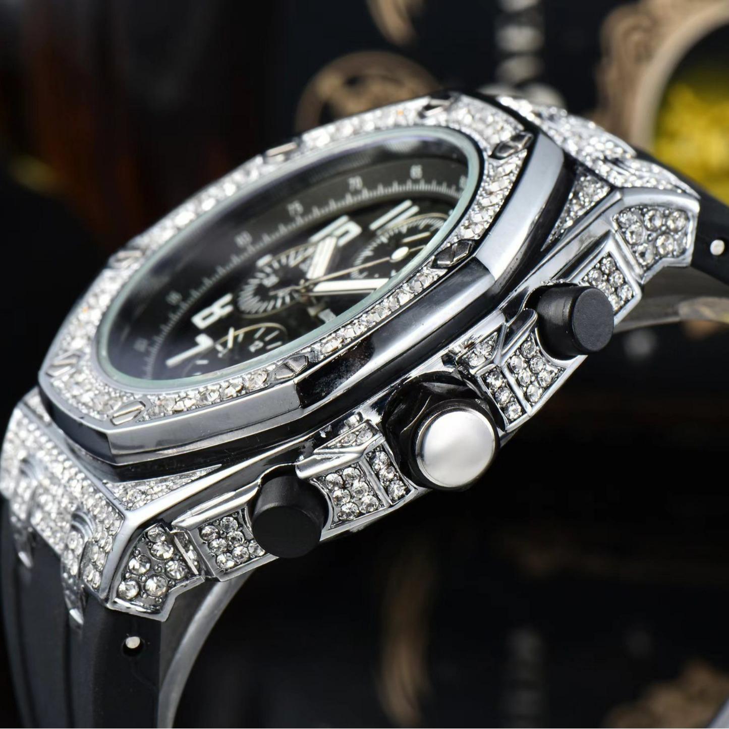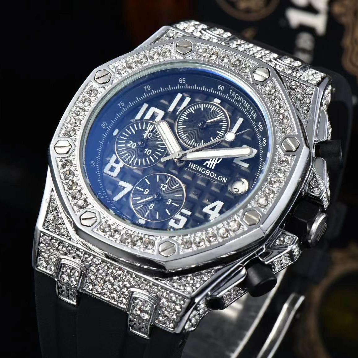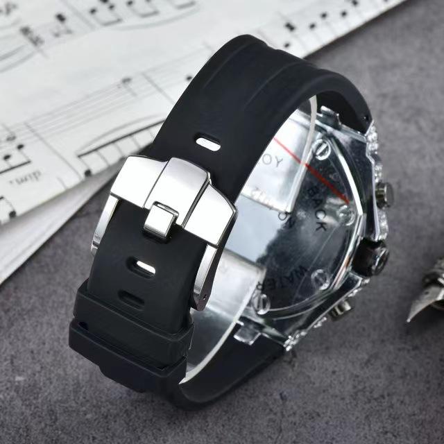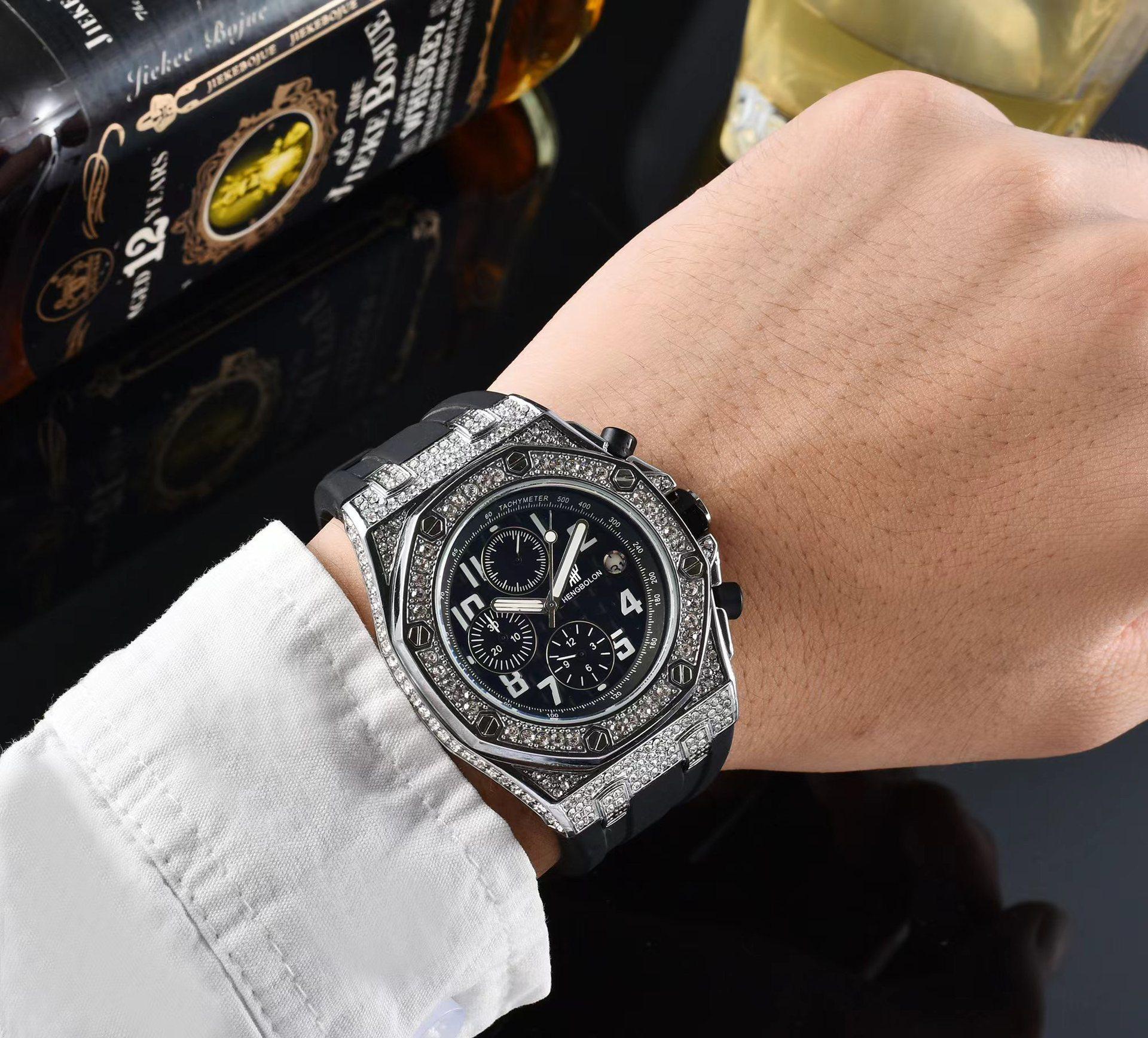 Reloj de Cuarzo de Tres Agujas para Hombre de Comercio Exterior Reloj Deportivo de Silicona Europeo y Americano Reloj de Diseño de Barril de Vino Moderno y Sencillo con Diamantes Completos