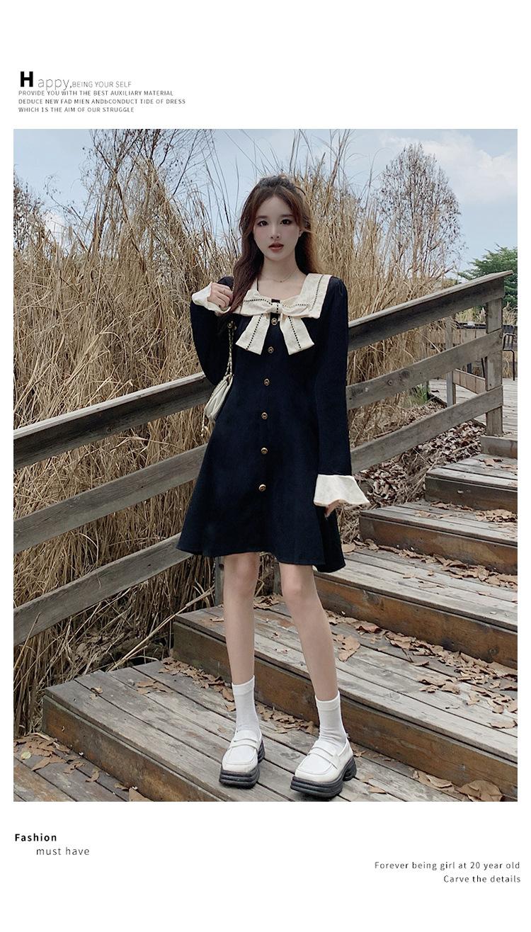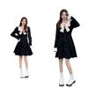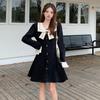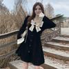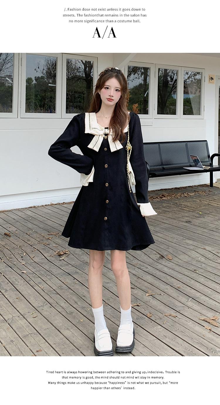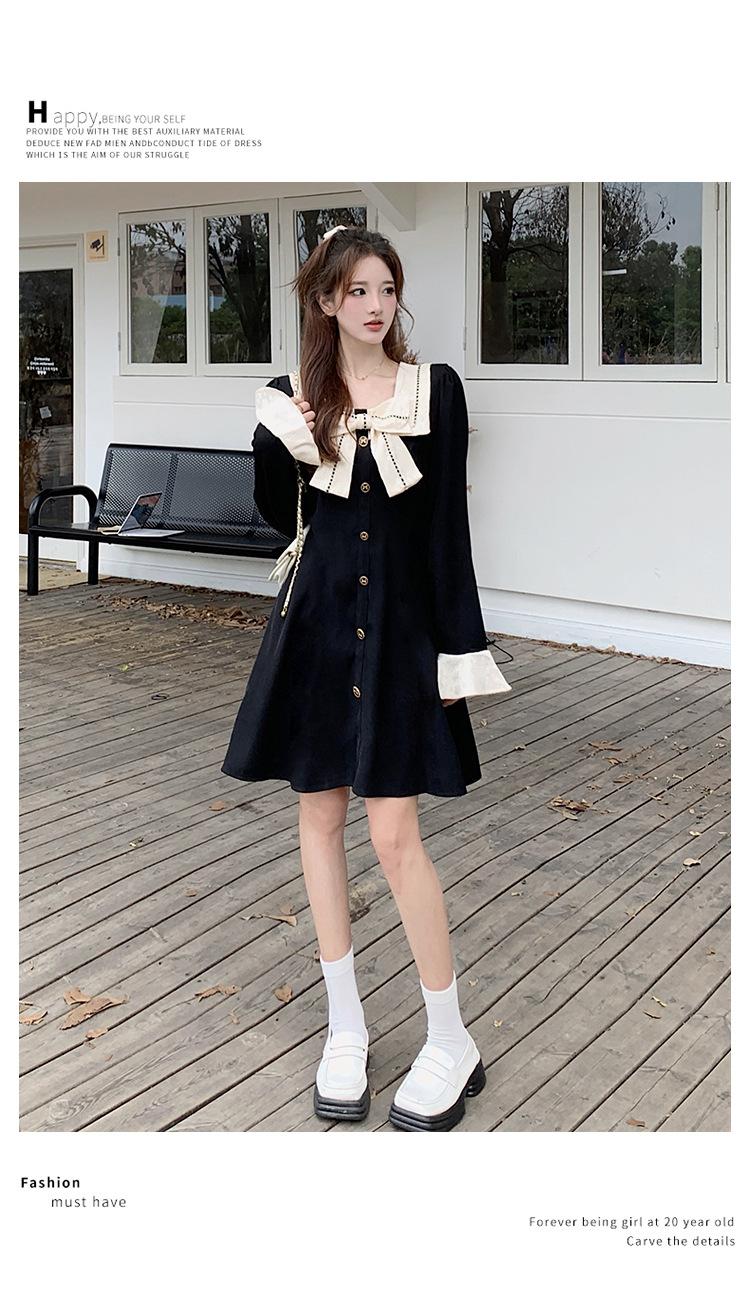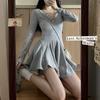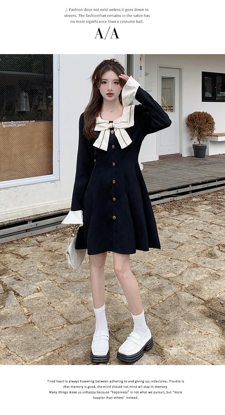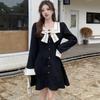 Primavera y Otoño chica gordita Forma de Pera Cintura Alta Estilo Francés Lazo Manga Larga Súper Delgada Vestido Alto Falda Larga Moda Estilo Coreano para Mujer