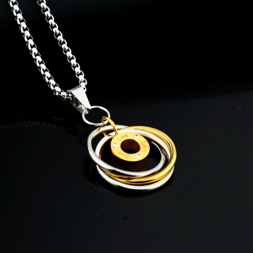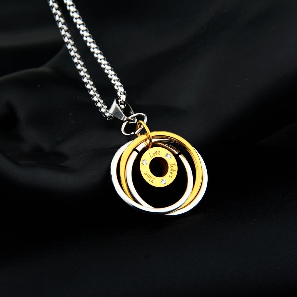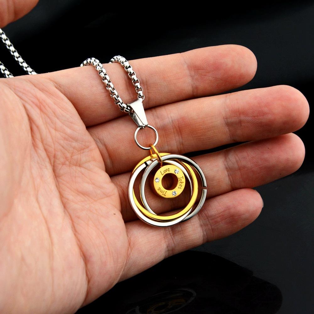 Explosiones de moda nacional Hip-Hop, moda que combina con todo, colgante de anillo de amor de acero de titanio, collar personalizado para hombres y mujeres.