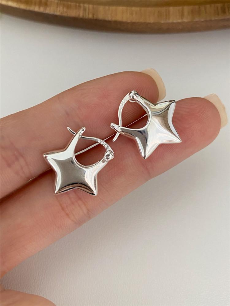 Pendientes pequeños de estrella de cinco puntas para mujer, sencillos, a la moda, combinables, elegantes, de plata S925, con pasador, estilo hip-hop.