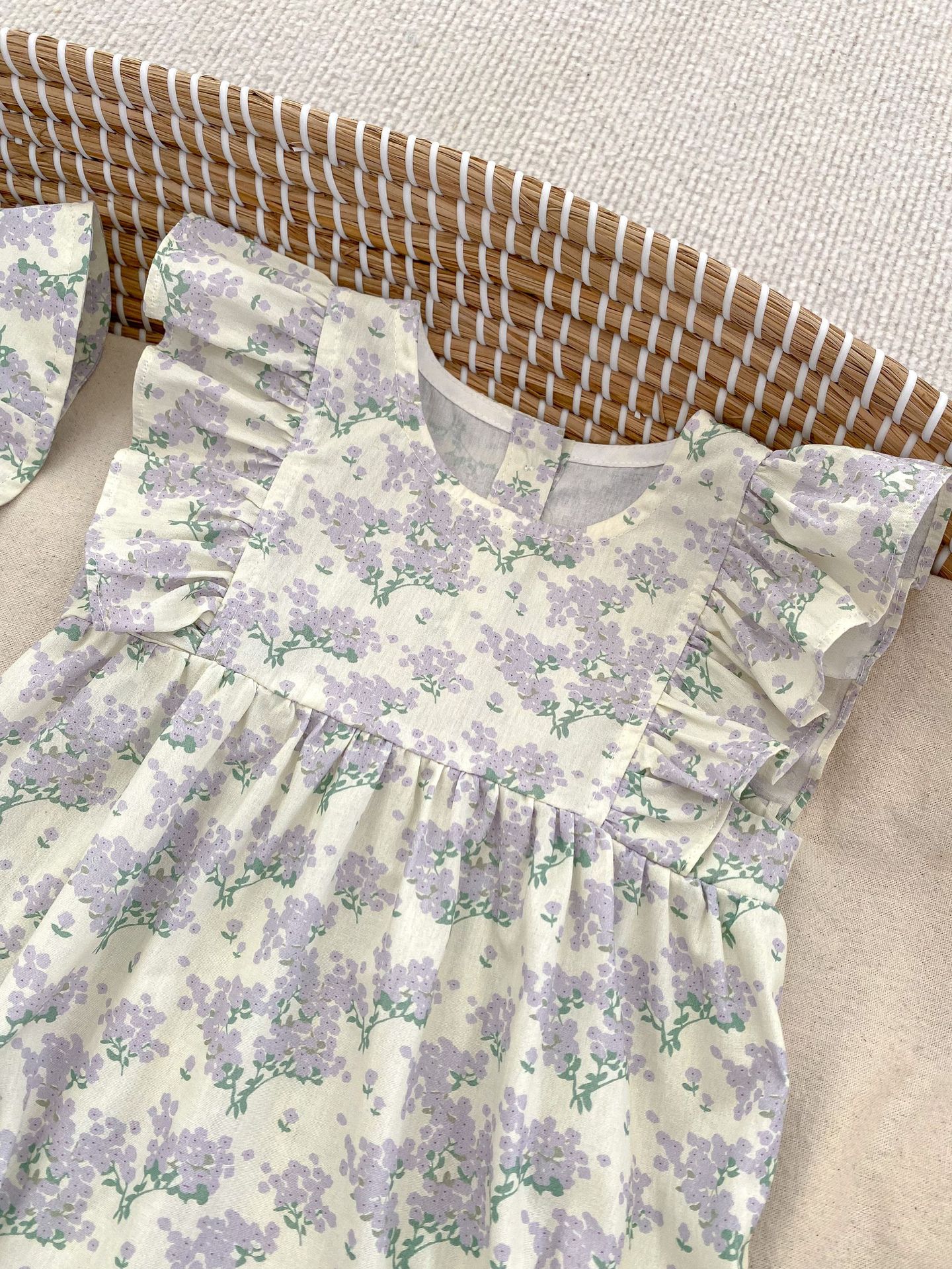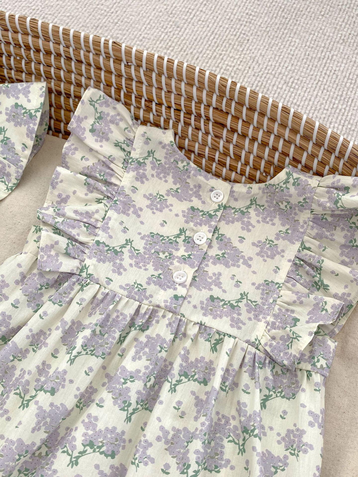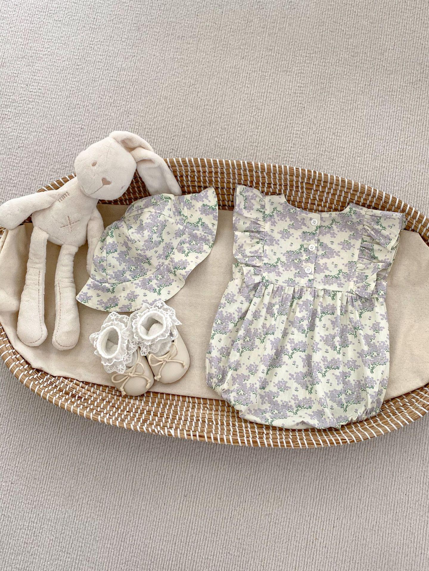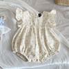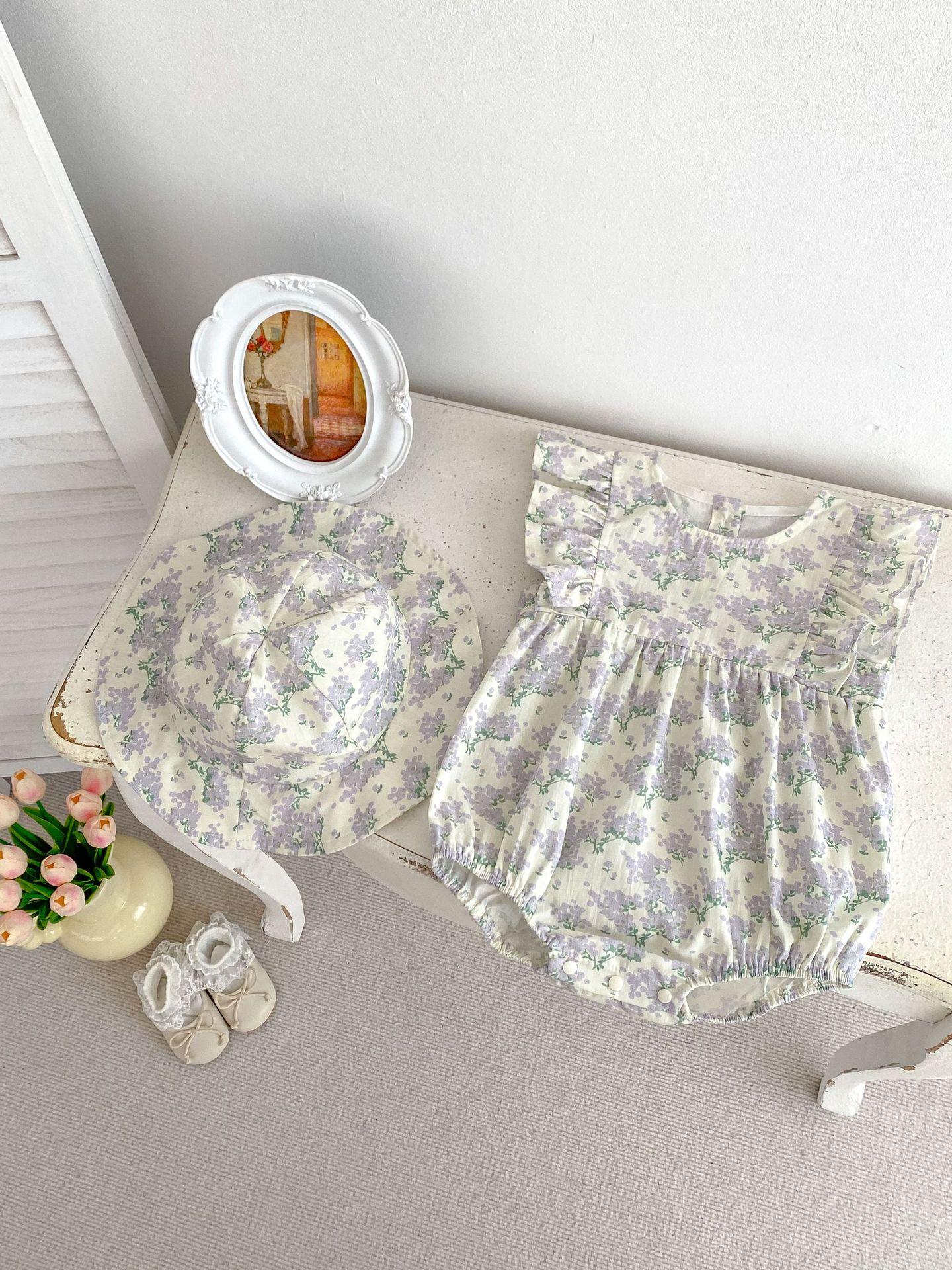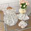 Ropa Nueva para Bebé 2025 Algodón Puro Floral Manga Volante Bolsa Ropa Pedo Ropa de Moda de Verano para Bebé Niña Traje Mameluco de Cuello Redondo