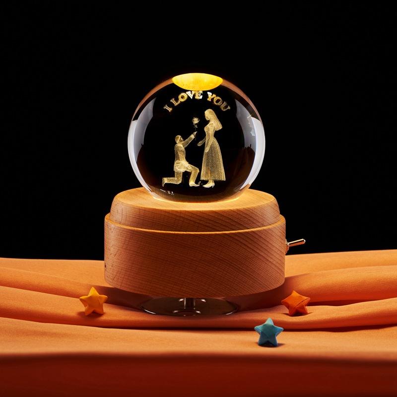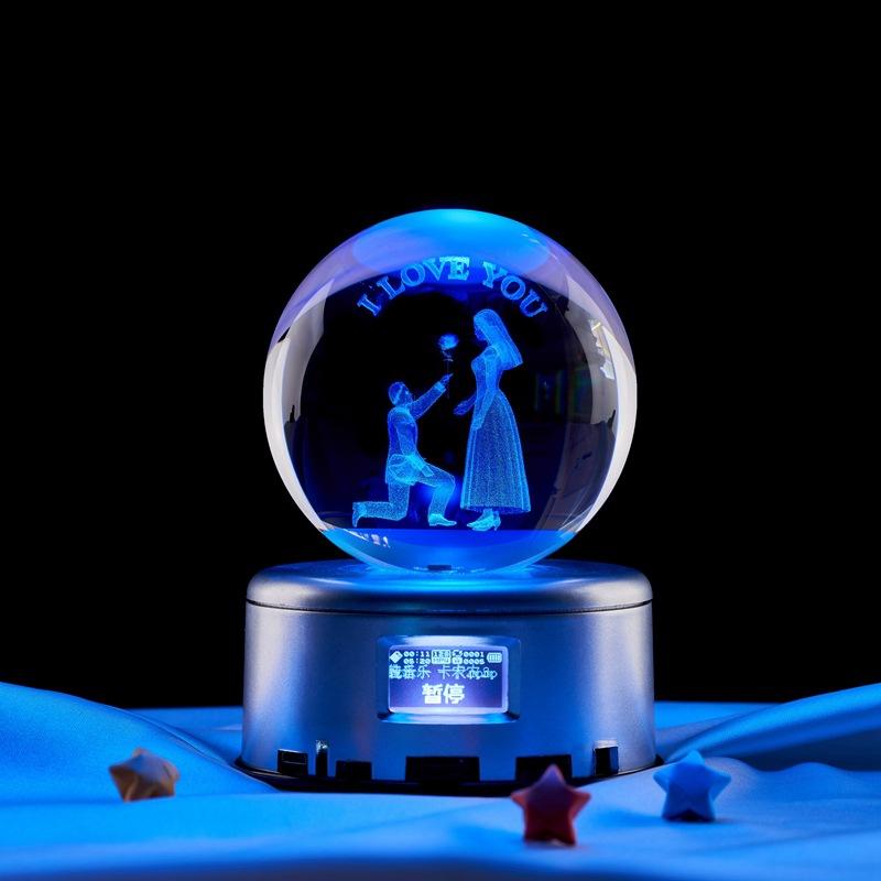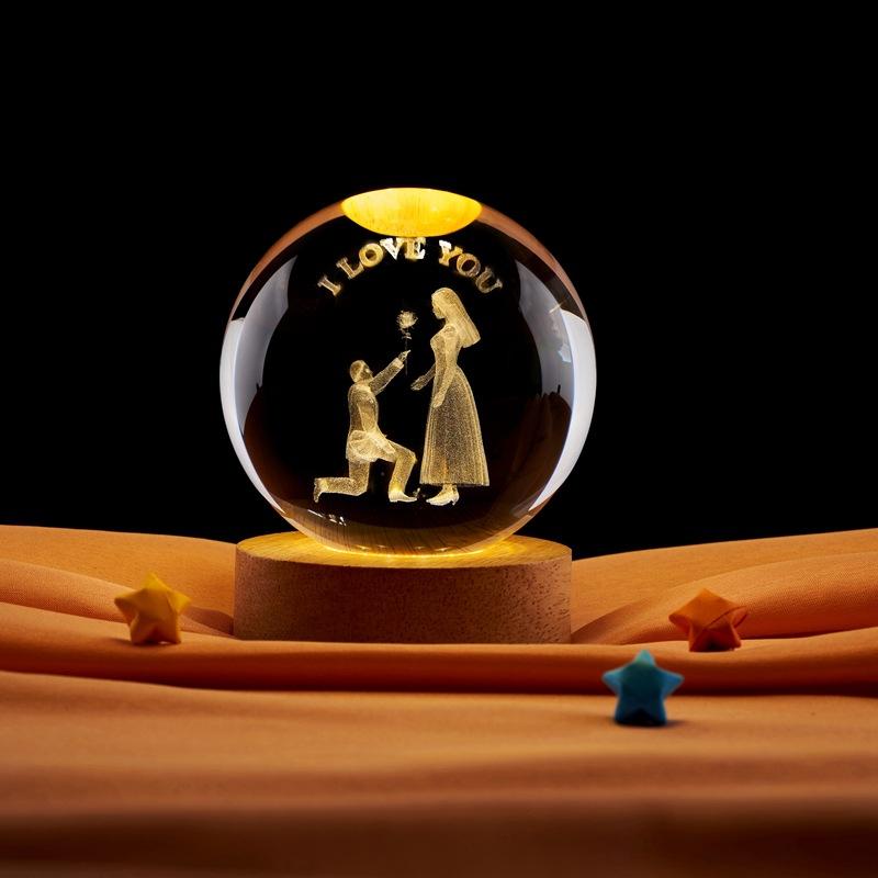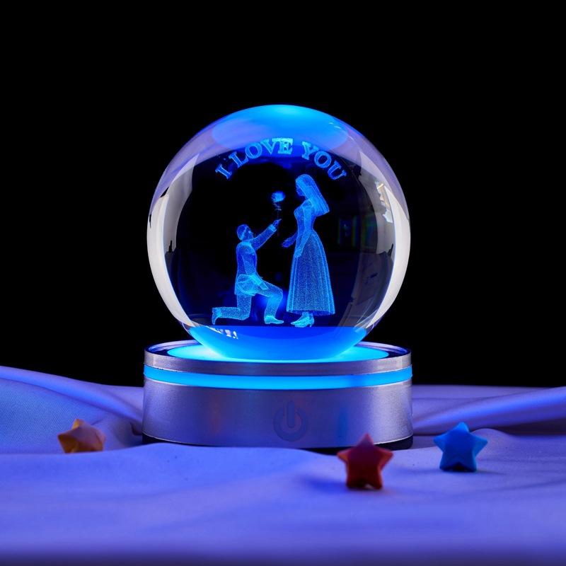 Propuesta de pareja al por mayor transfronteriza bola de cristal con grabado láser tridimensional 3D adornos de luz nocturna de ambiente de mesita de noche para dormitorio