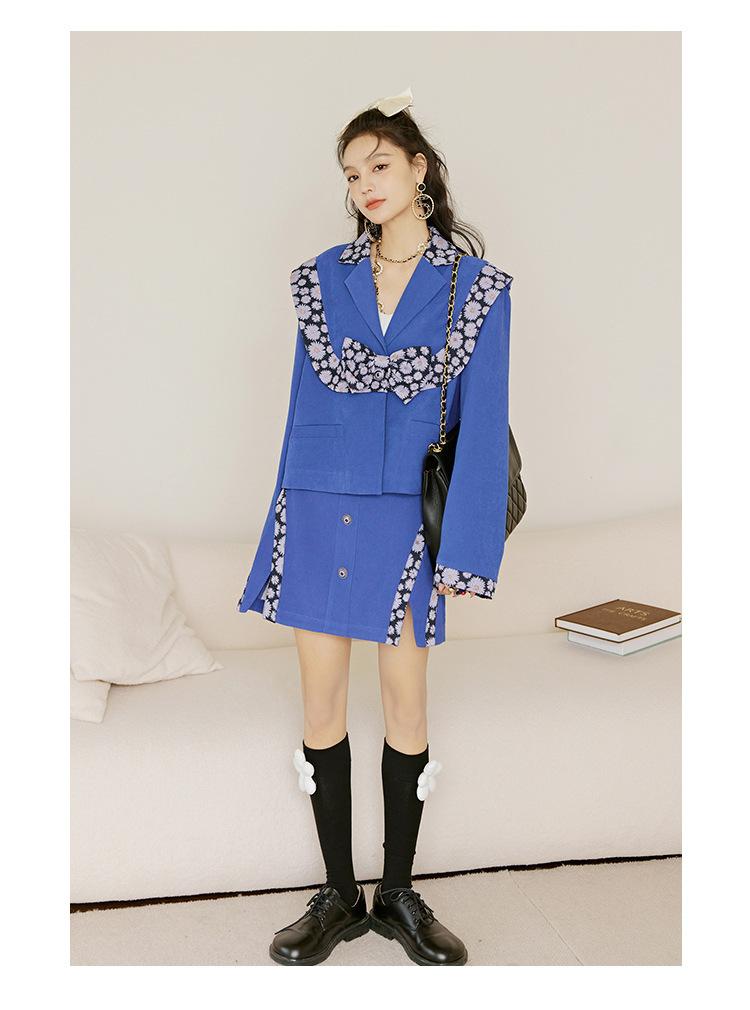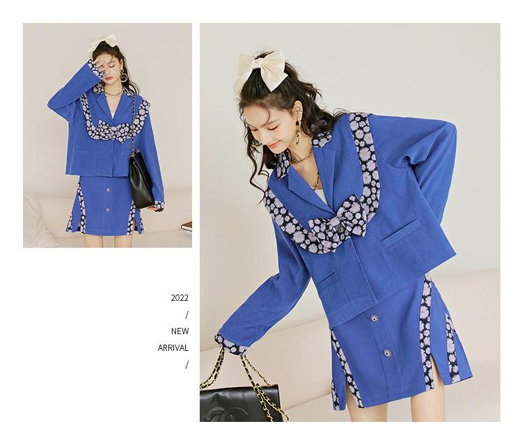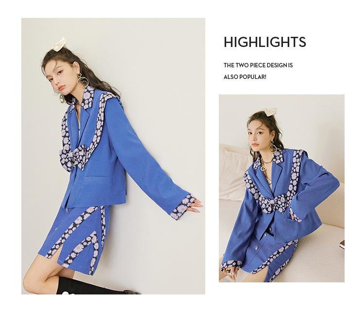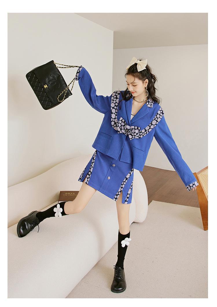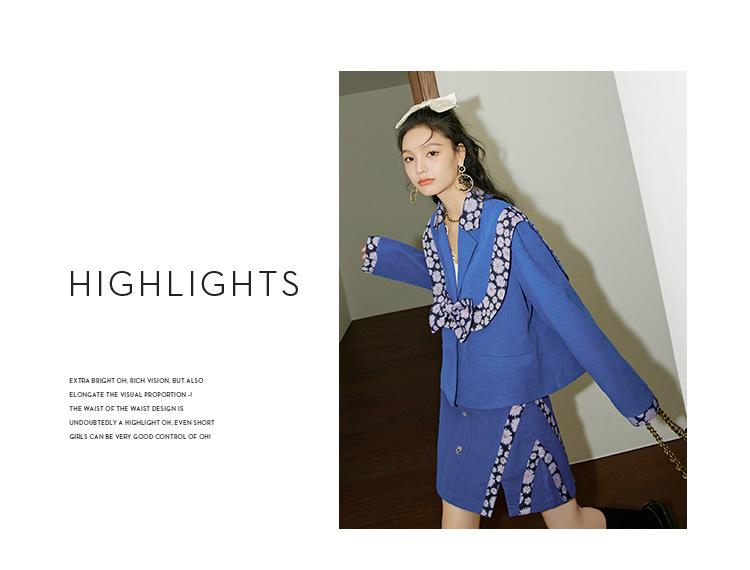 51204 Traje de Falda Profesional de Primavera para Mujer 2024 Versión Coreana Estilo de Diseñador Chaqueta Corta Única con Patchwork y Decoración Tridimensional