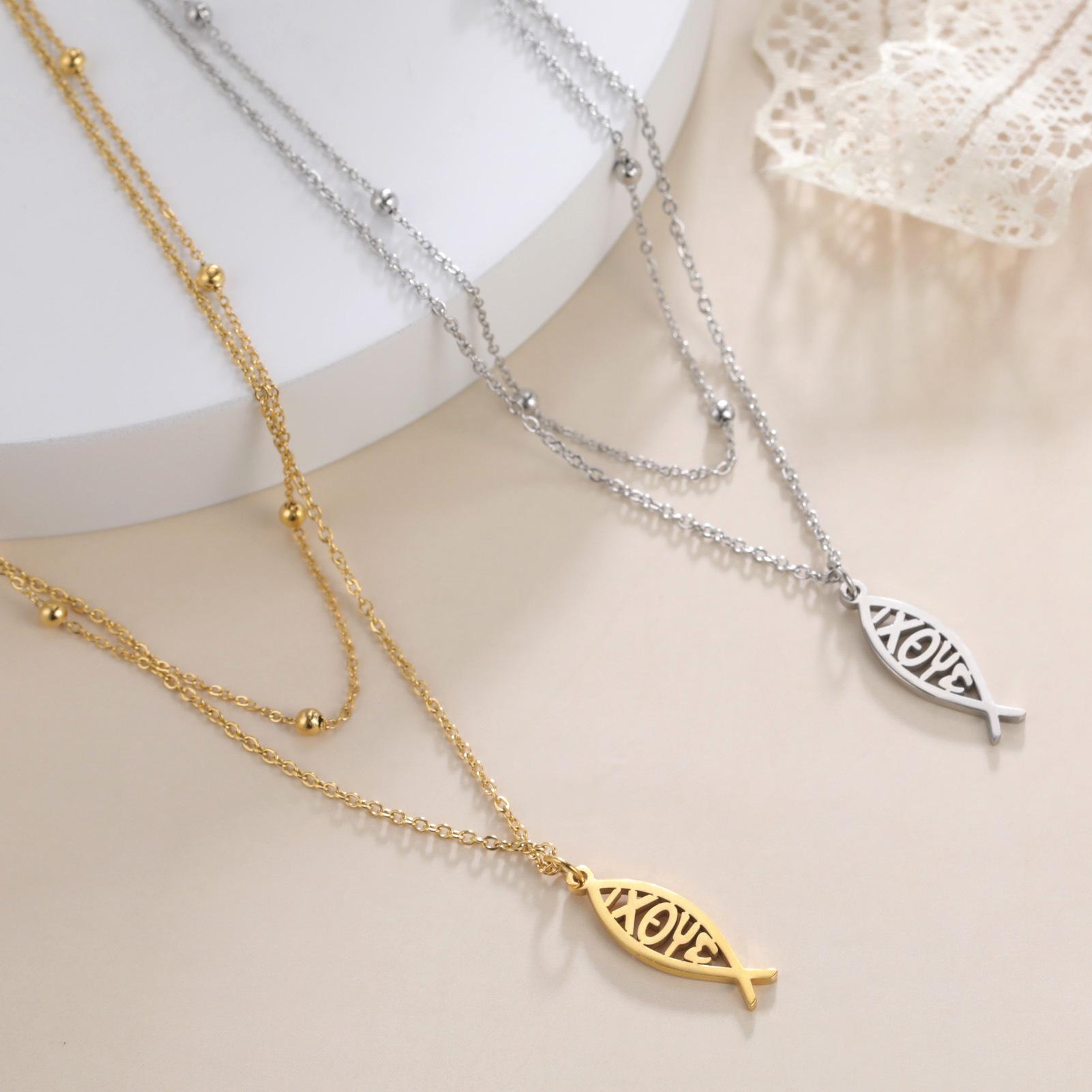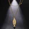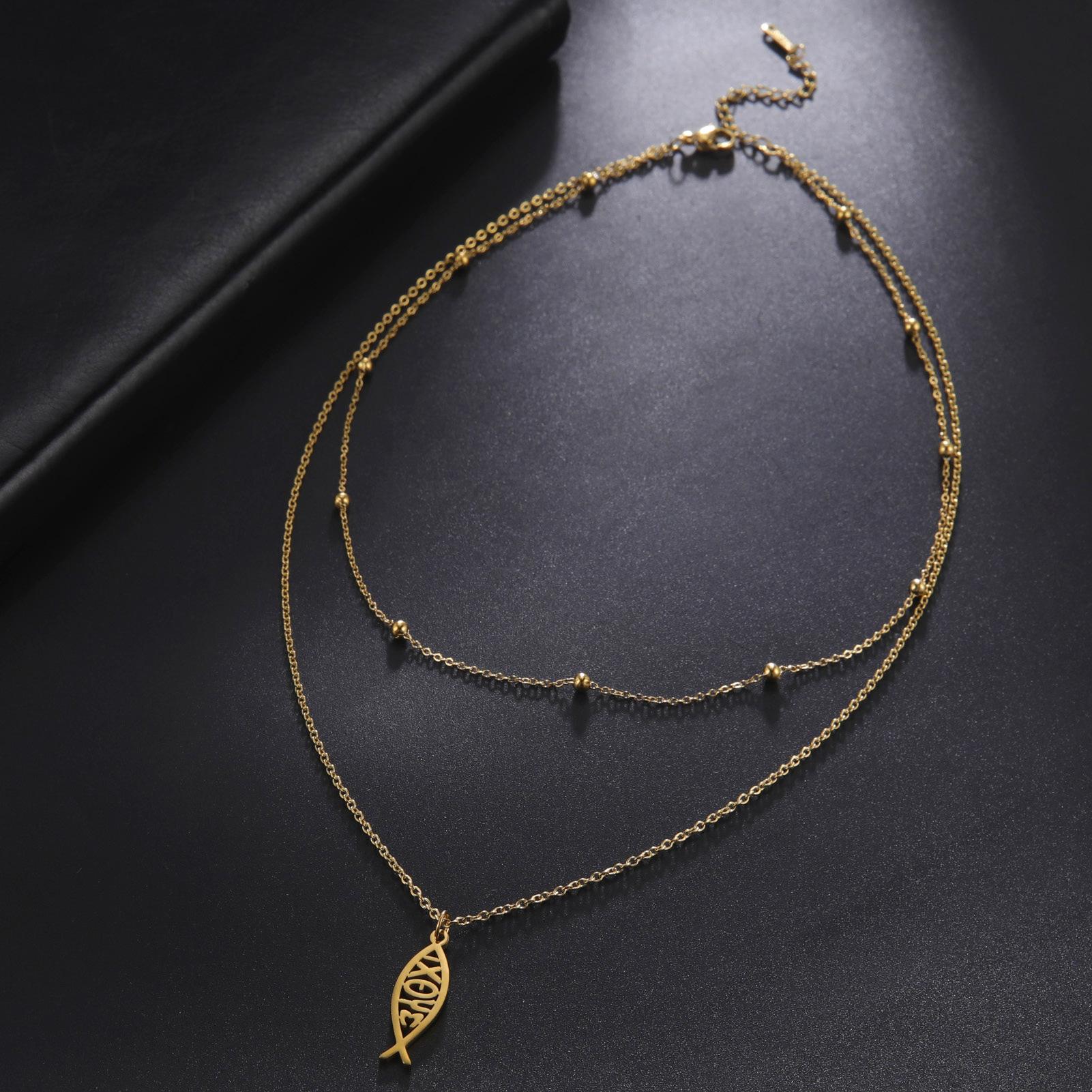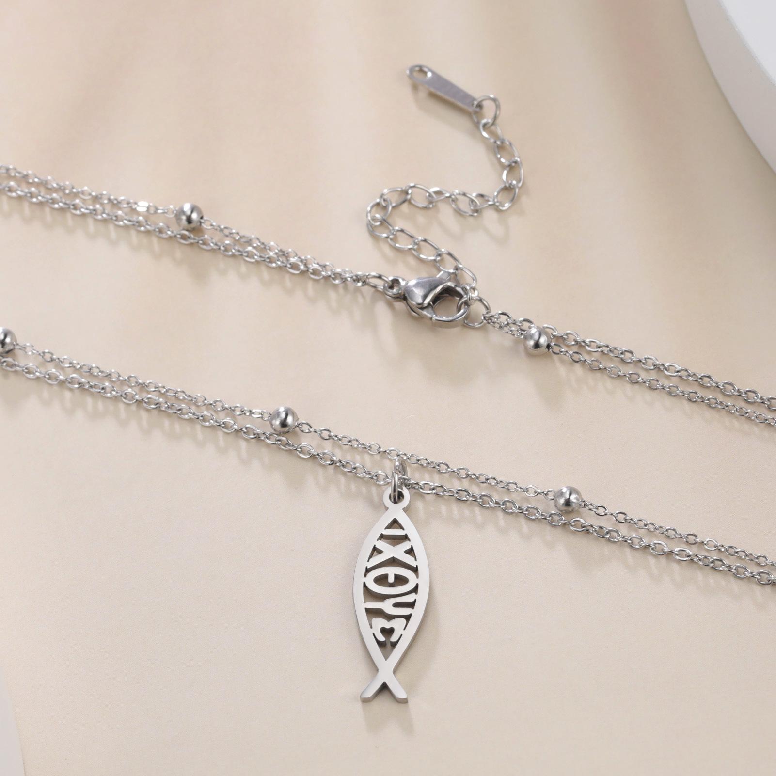 Cadena de clavícula de marca de moda que combina con todo, colgante de pez hueco de alta gama con letras inglesas, cadena para el cuello, collar de acero de titanio de doble capa