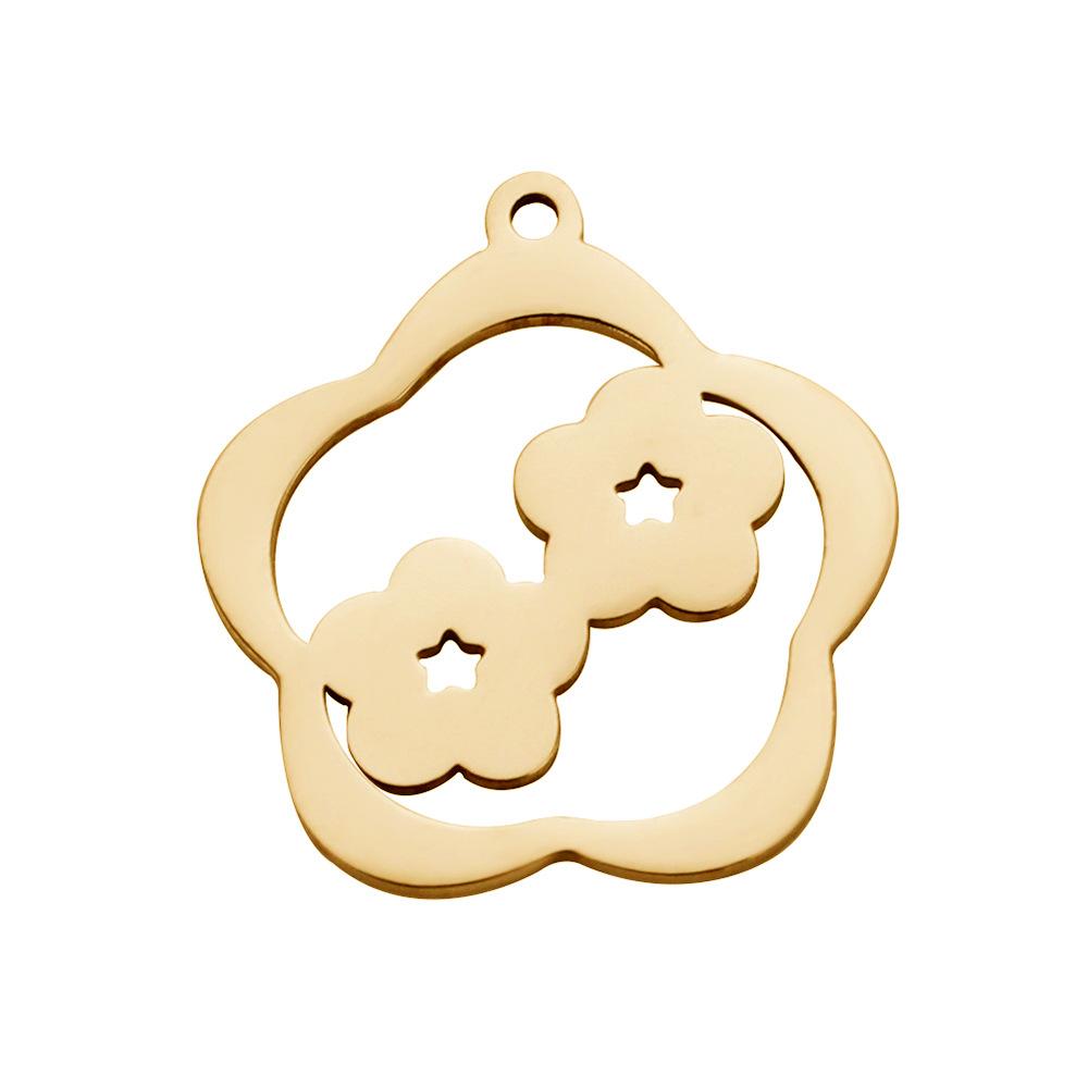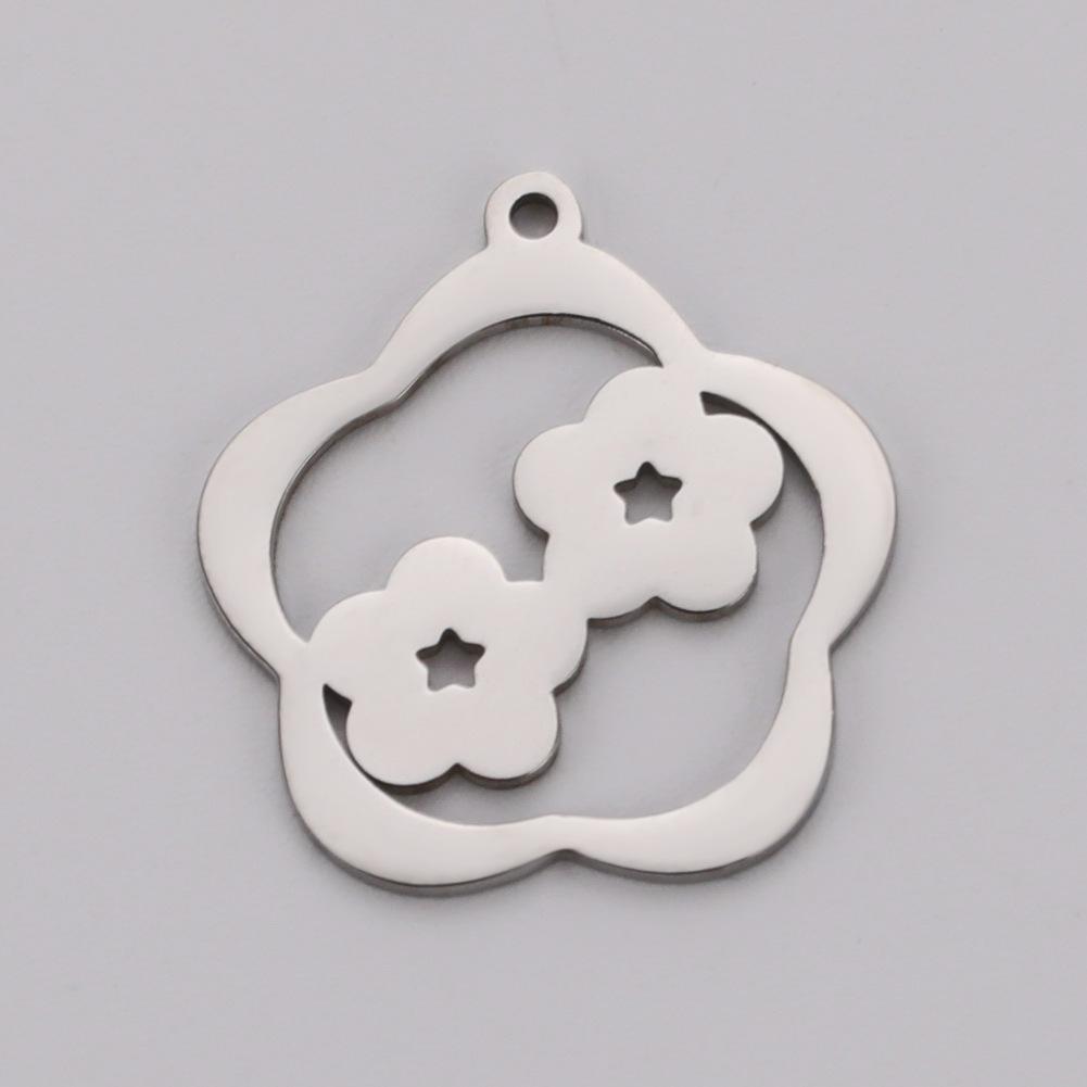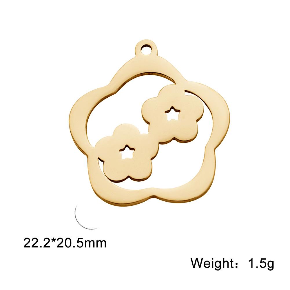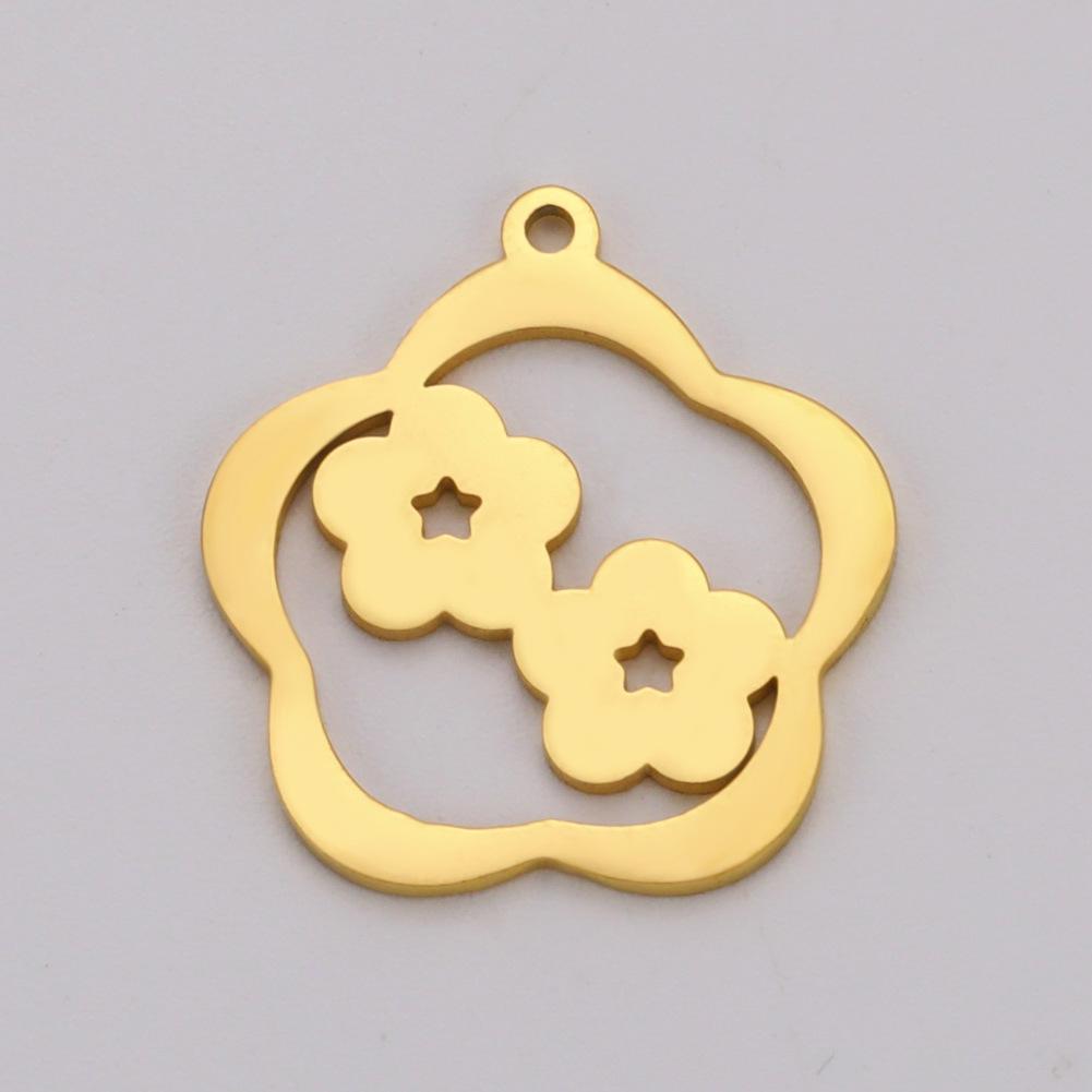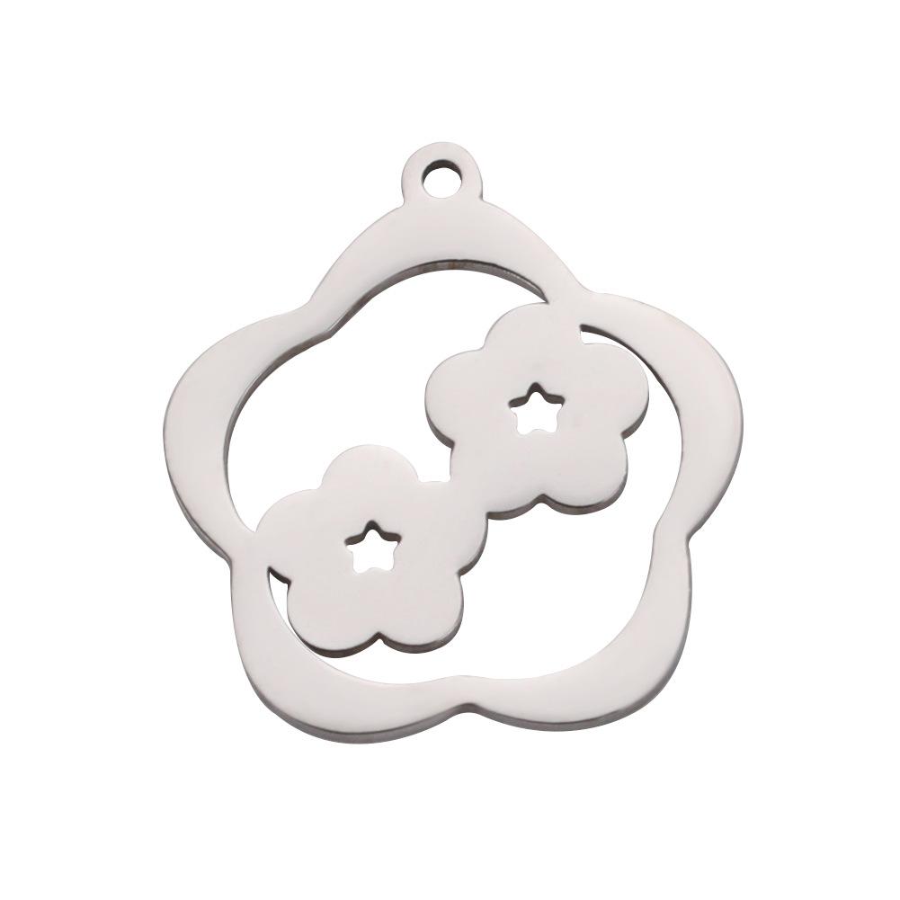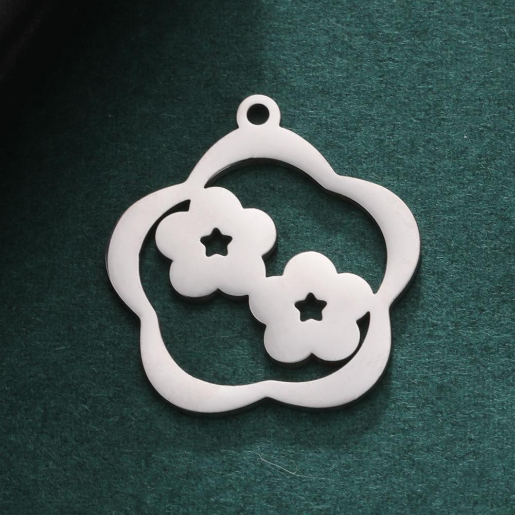Pendientes hechos a mano DIY, collar, colgante, accesorios, estilo dulce, acero inoxidable, hueco, doble flor, pequeña flor, colgante, accesorios
