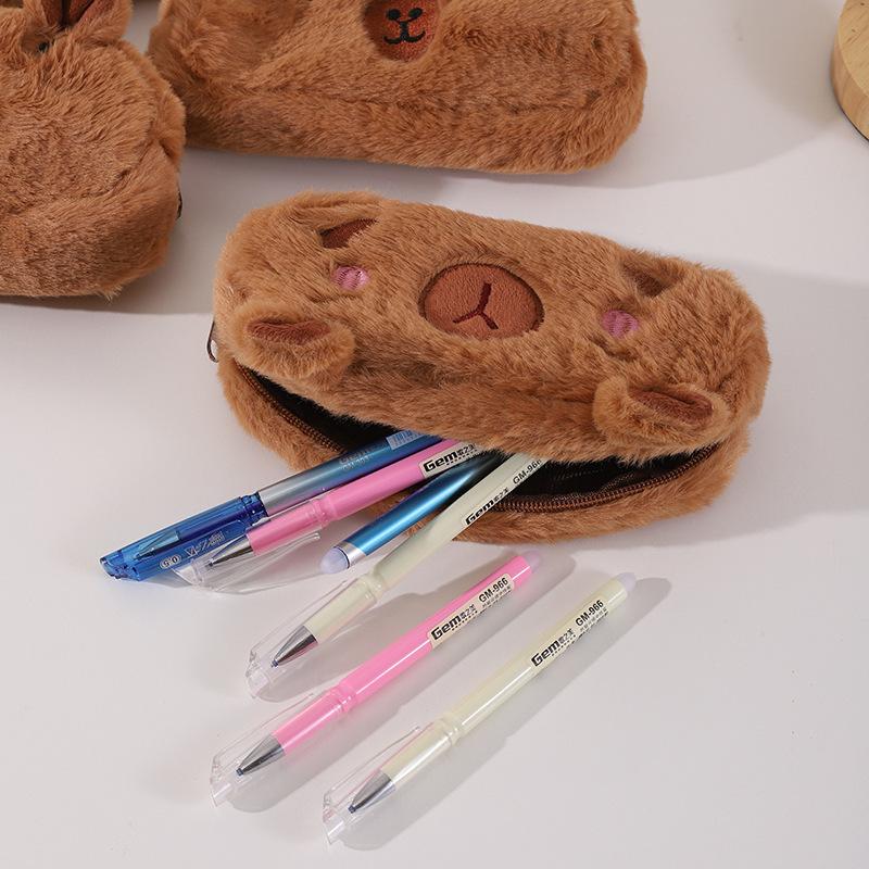Estuche de lápices Kappi Bala de felpa, estilo Ins, de gran capacidad, multifuncional, para estudiantes, con dibujos animados, 2024