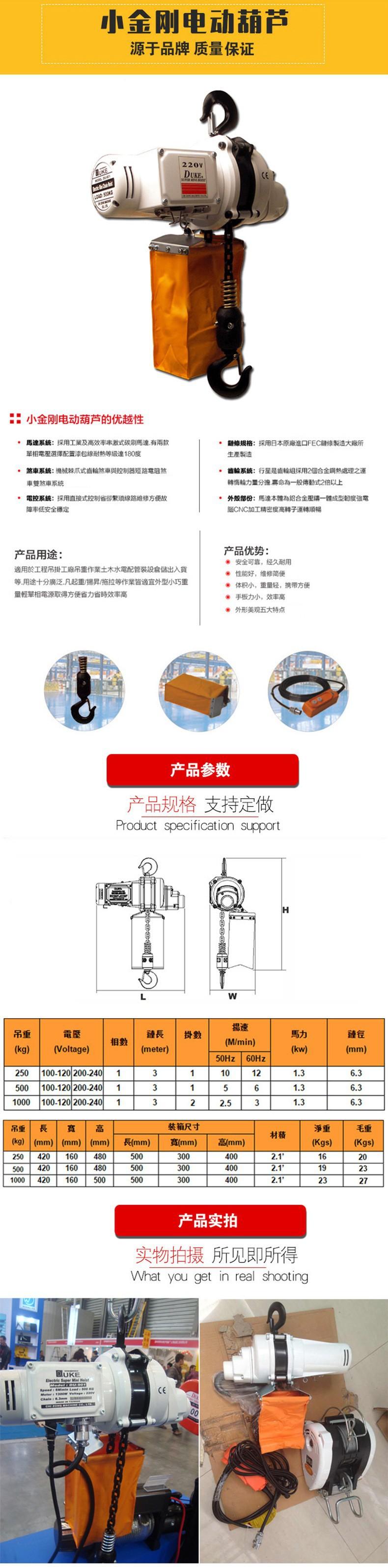 Polipasto eléctrico pequeño King Kong de 0,25 toneladas, 0,5 toneladas y 1 tonelada, polipasto de cadena original de Taiwán