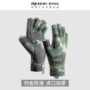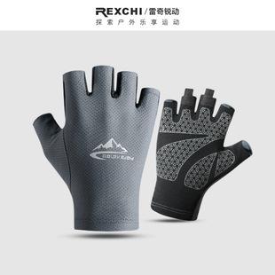 | Guantes de licra de seda de hielo de verano para protección solar, para hombre, de medio dedo, para exteriores, antideslizantes, con boca de tigre, elásticos gruesos, deportivos, para pesca |