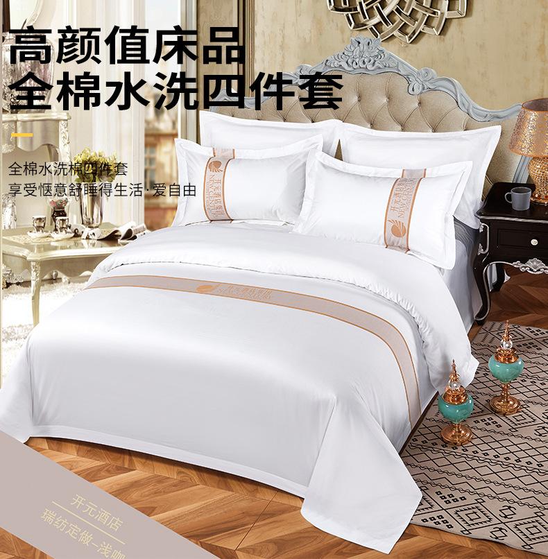 Fábrica en nombre del hotel ropa de cama de cuatro piezas algodón blanco sábana funda nórdica casa de familia hotel estrella ropa de cama