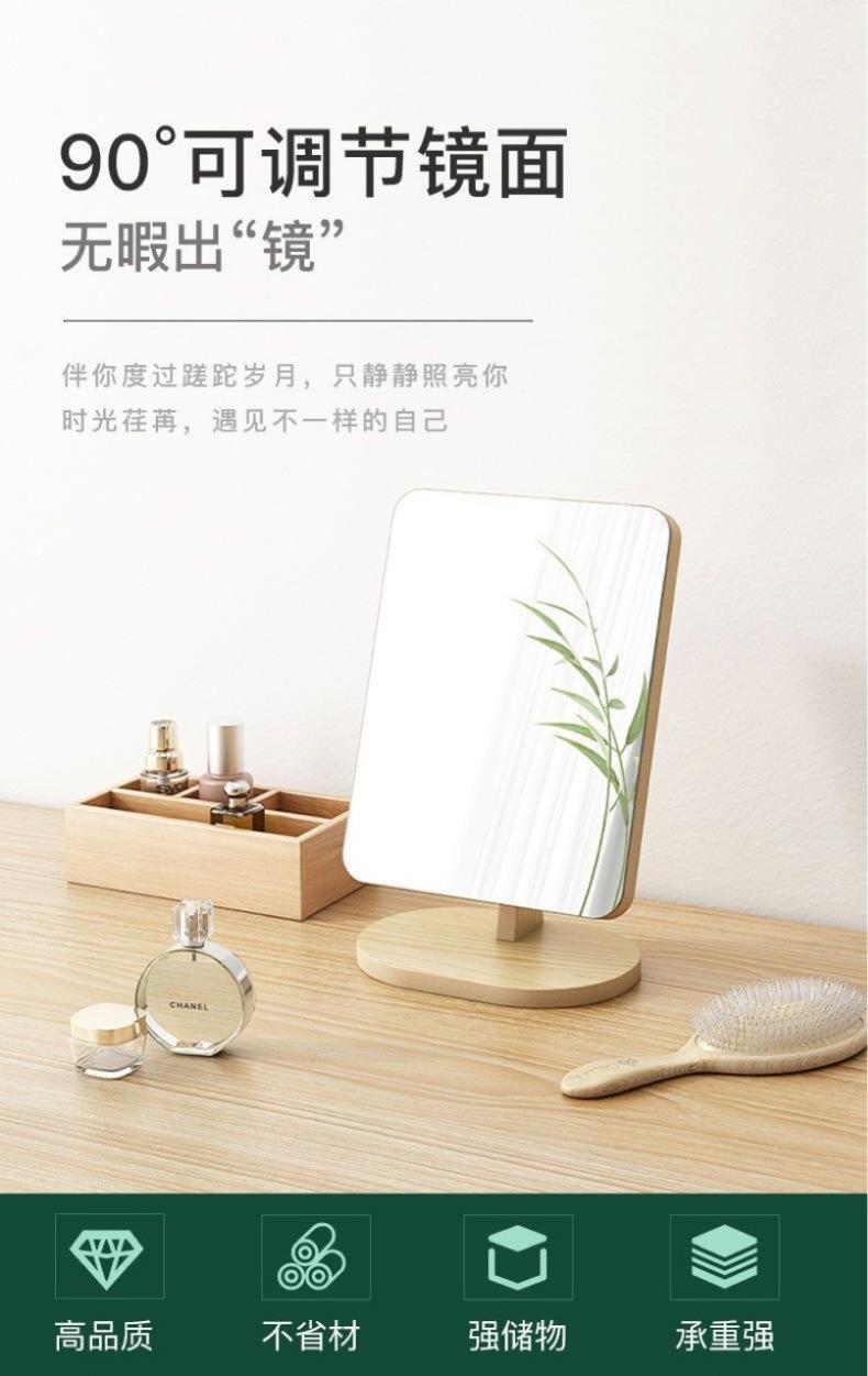 Espejo de tocador de madera giratorio espejo de maquillaje dormitorio de estudiante espejo de escritorio portátil portátil espejo grande