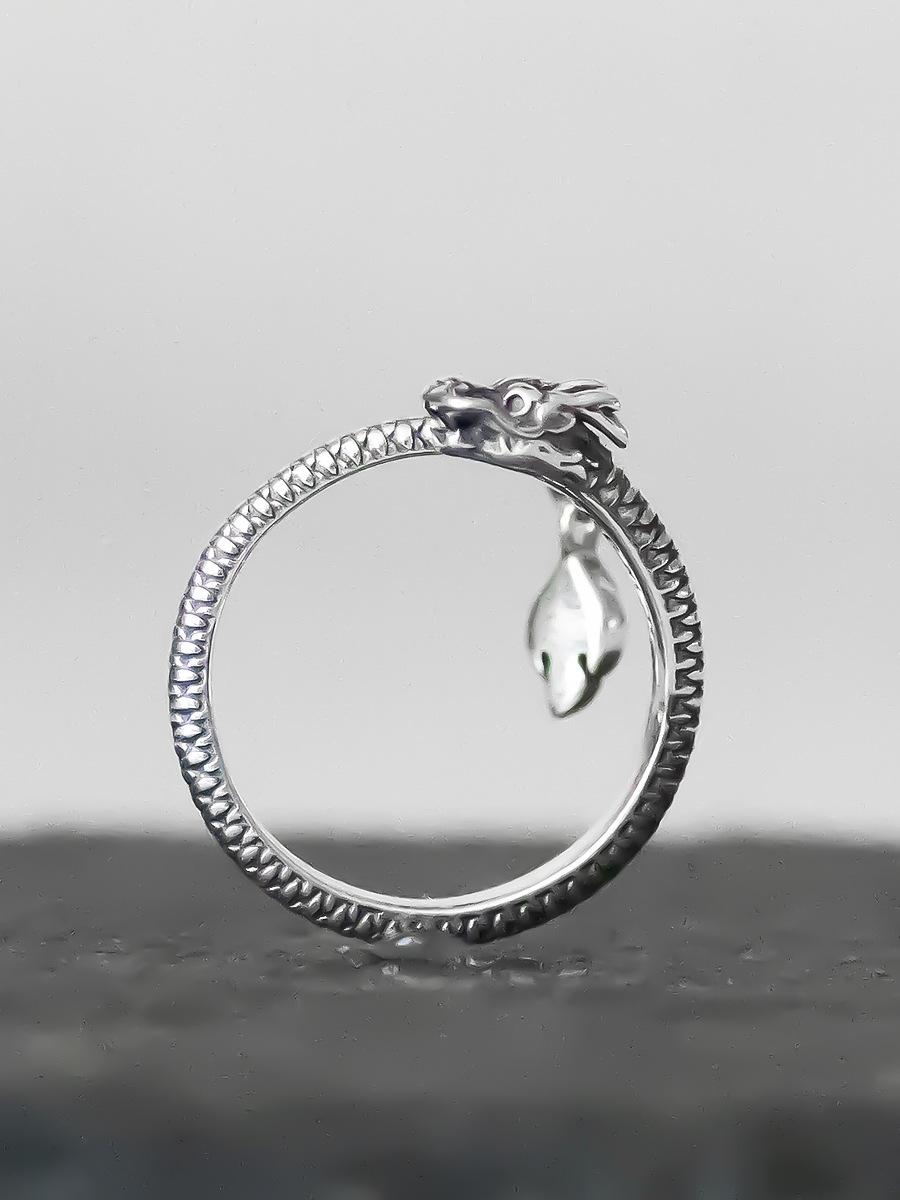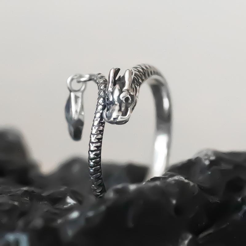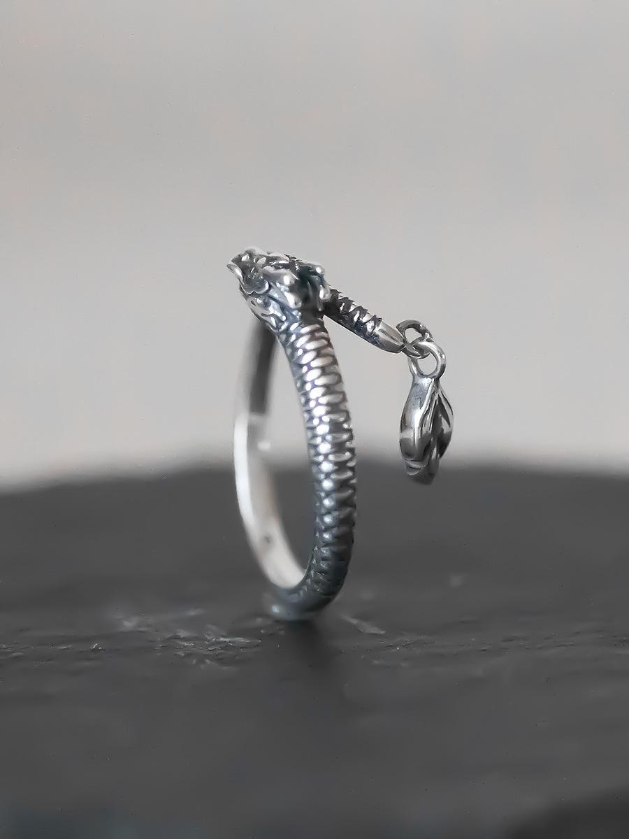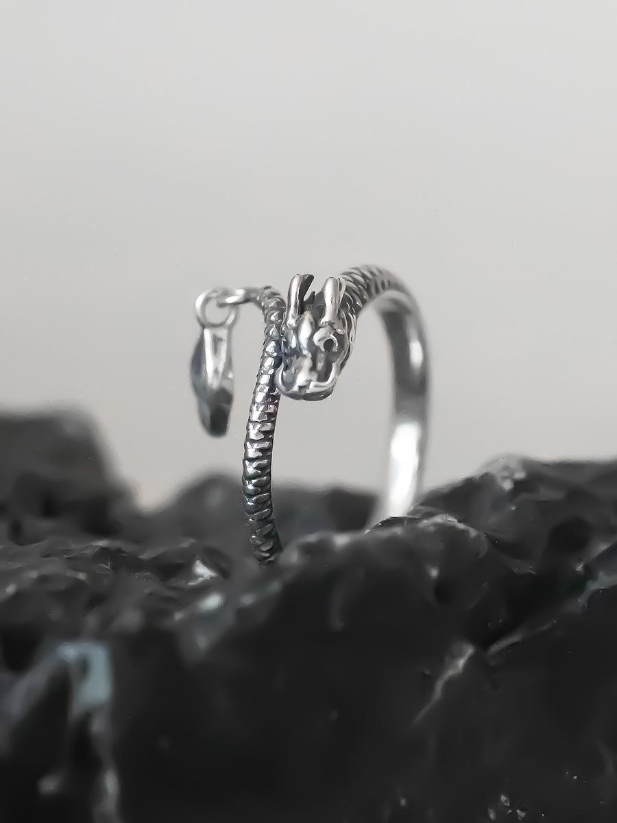 Xiangqi cola de dragón retro desgastado inteligente columpio Zodiac dragón año anillo abierto anillo de cola hombres y mujeres Venta directa de fábrica