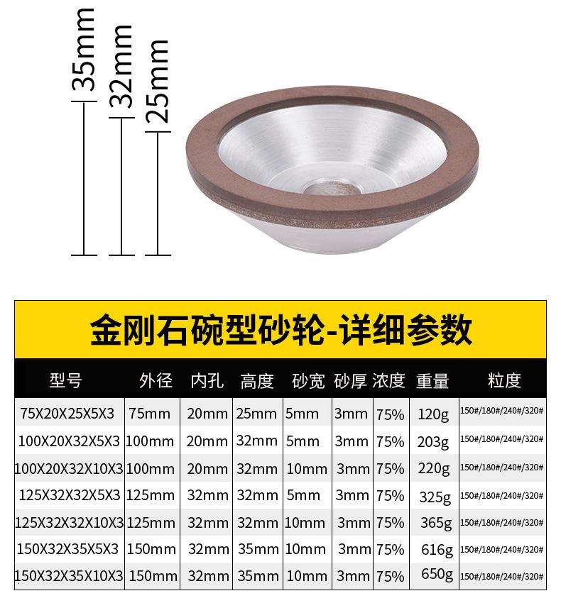 Muela de aleación, rectificadora, muela, resina, diamante, muela de copa, rectificado, acero de tungsteno, carburo, muela al por mayor