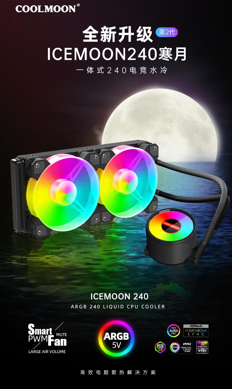 Radiador de Refrigeración Líquida Cold Moon 240 Radiador de Doble Fila Integrado ARGB Shenguang Sincrónico Multiplataforma para CPU de Computadora