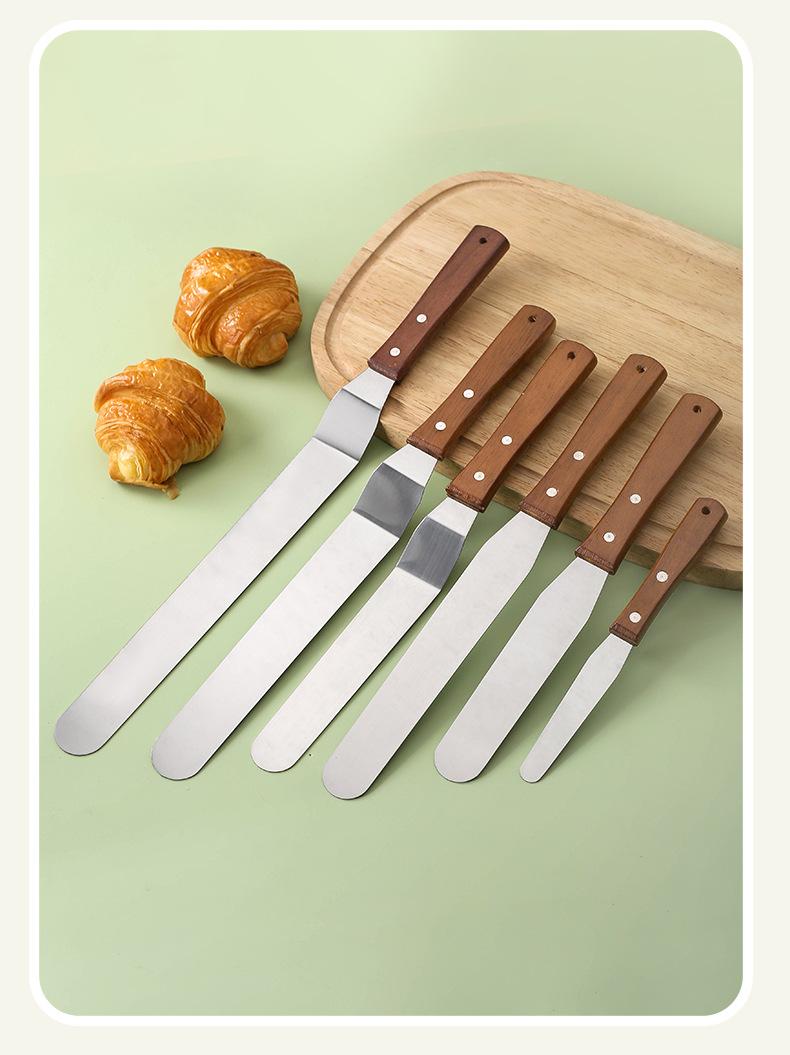 Herramientas para Hornear Espátula de Mantequilla de Acero Inoxidable Cuchillo para Besar Rascador para Decoración de Pasteles Cuchillo Desmoldador Palo para Revolver Cuchillo con Mango de Madera