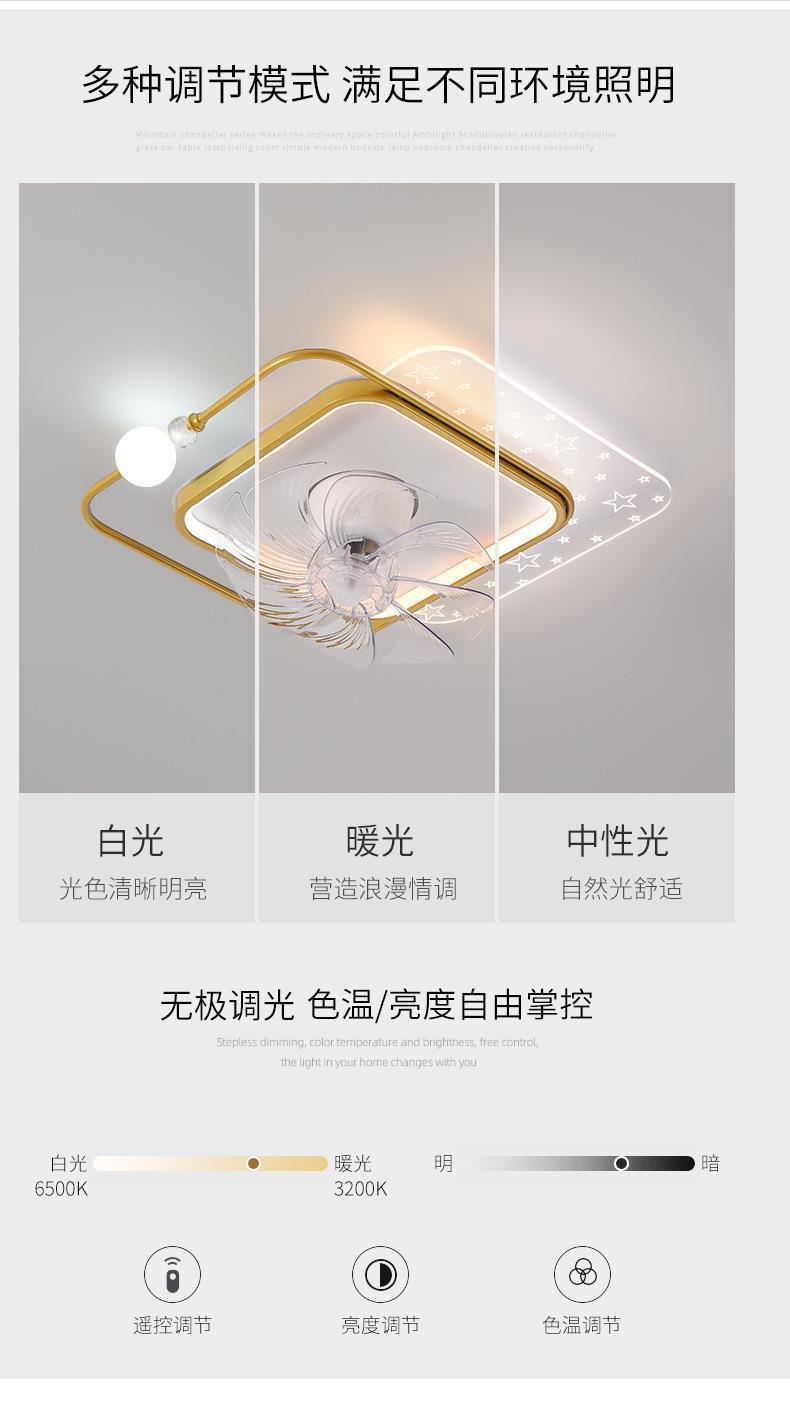 [Transfronterizo] Nueva lámpara de ventilador de techo de lujo 2022, ventilador eléctrico integrado para dormitorio, restaurante nórdico, hogar