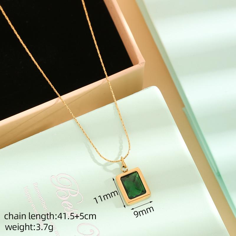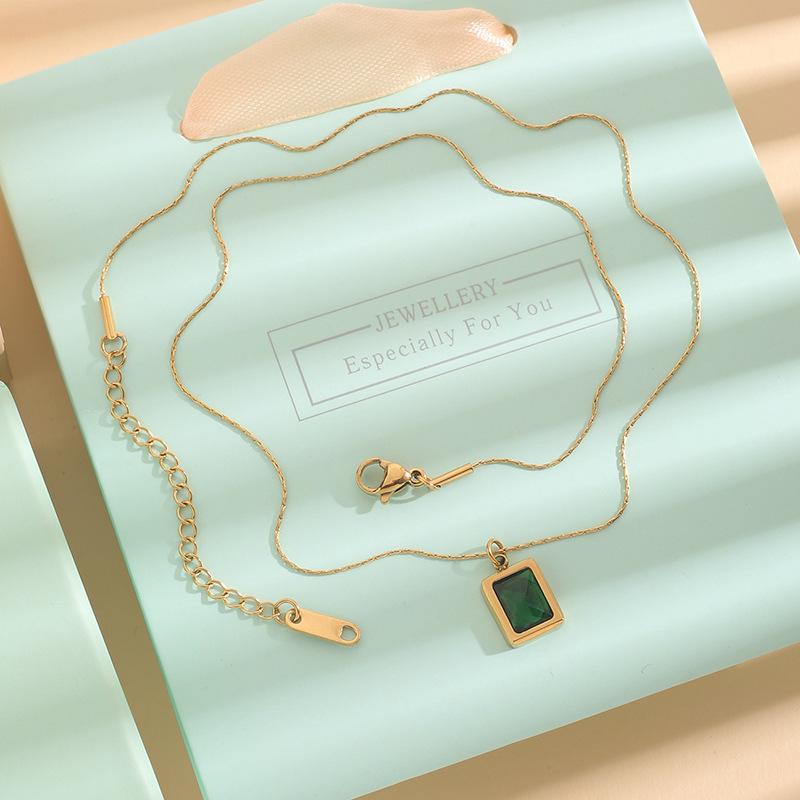 Collar de cadena de espina de pescado de acero y titanio con diamante verde simple, joyería femenina al por mayor, cadena de clavícula de acero inoxidable de lujo ligera, collar exclusivo transfronterizo