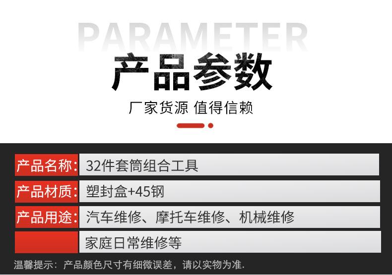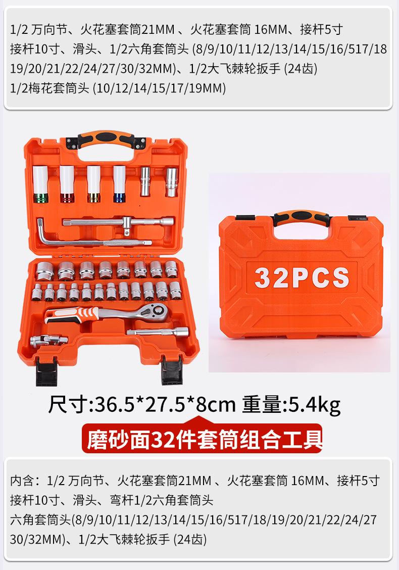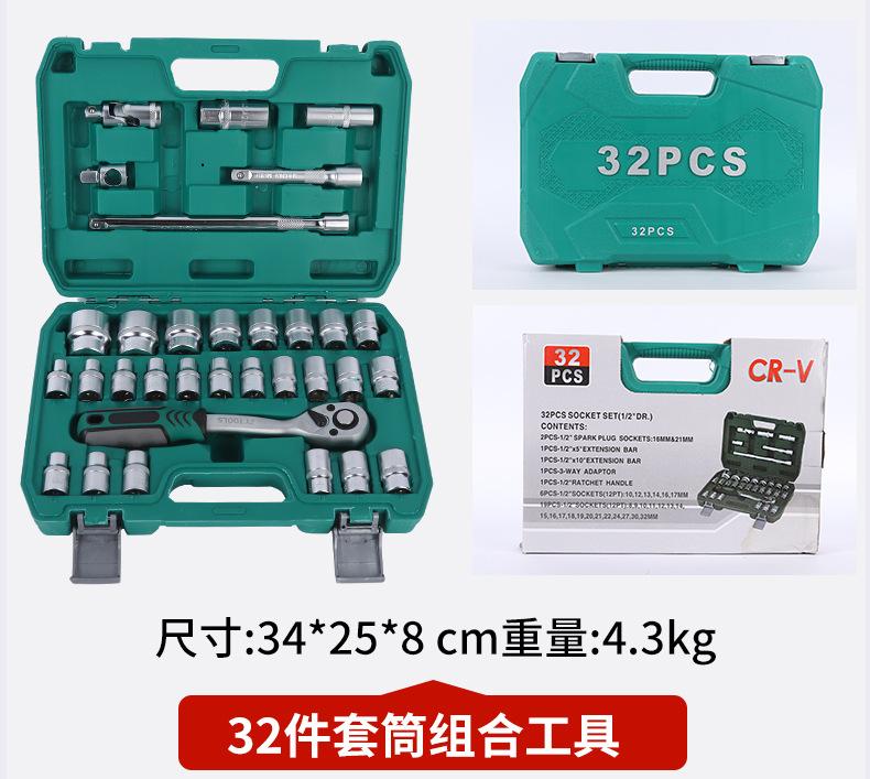 New chrome vanadium steel porcelain 32-piece sleeve combination tool
