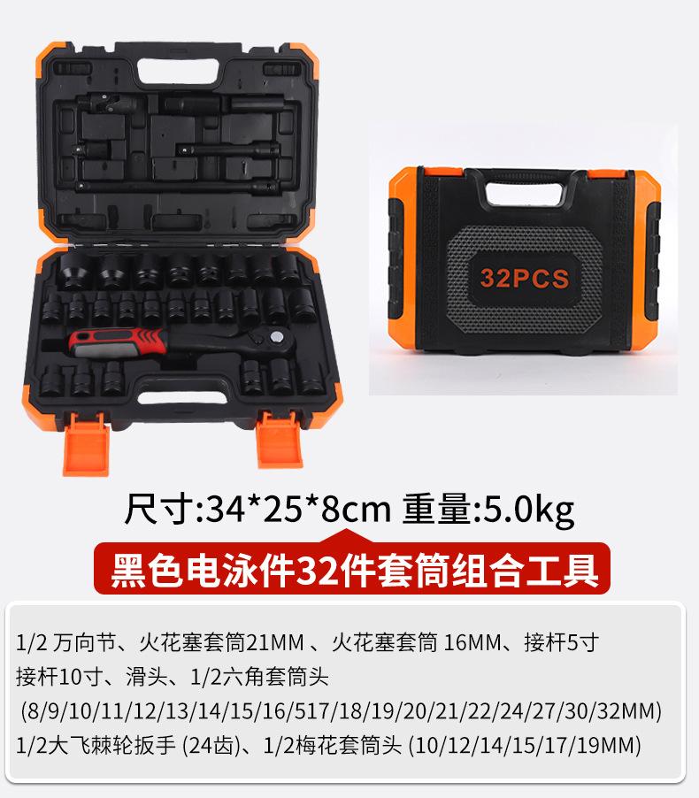 32-piece sleeve combination tool, Black electrophoresis pieces 32 pieces Black electrophoresis sleeve combinat...