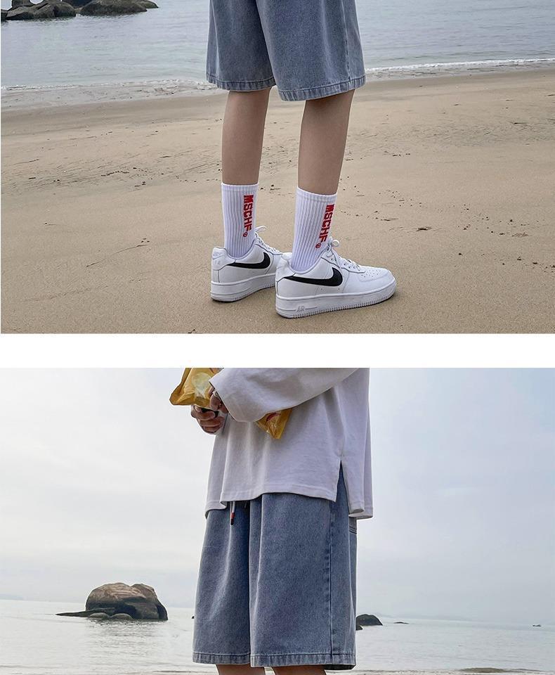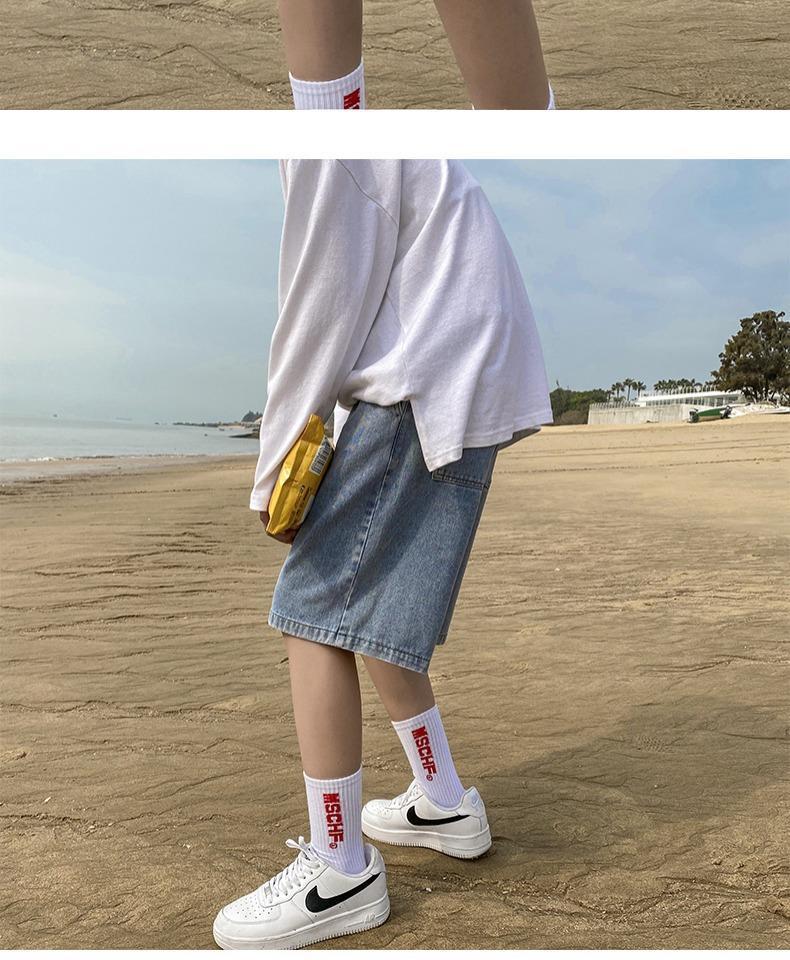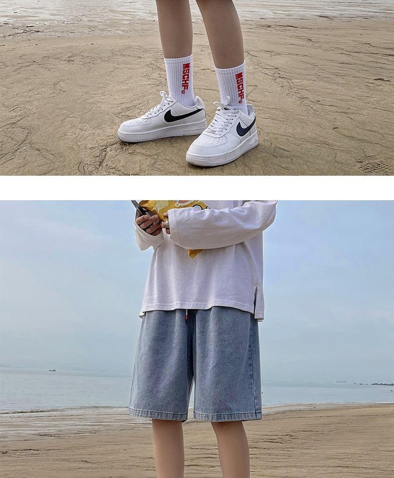 Pantalones cortos vaqueros de verano 2023 para hombre, holgados, de 5 puntos, estilo japonés, estilo Hong Kong, para estudiantes, de marca de moda, informales, de 5 puntos, con pierna ancha y longitud media.