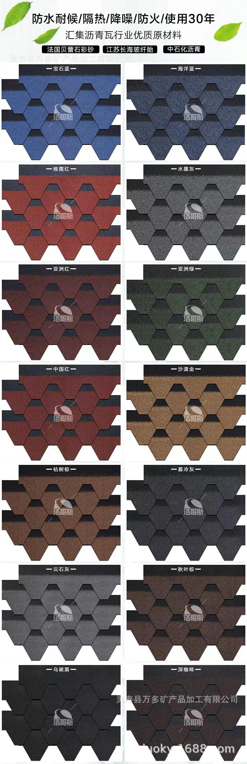 Los fabricantes suministran asfalto coloreado impermeable, arena coloreada, superficie de fieltro, elastómero SBS, asfalto modificado, arena sinterizada impermeable.