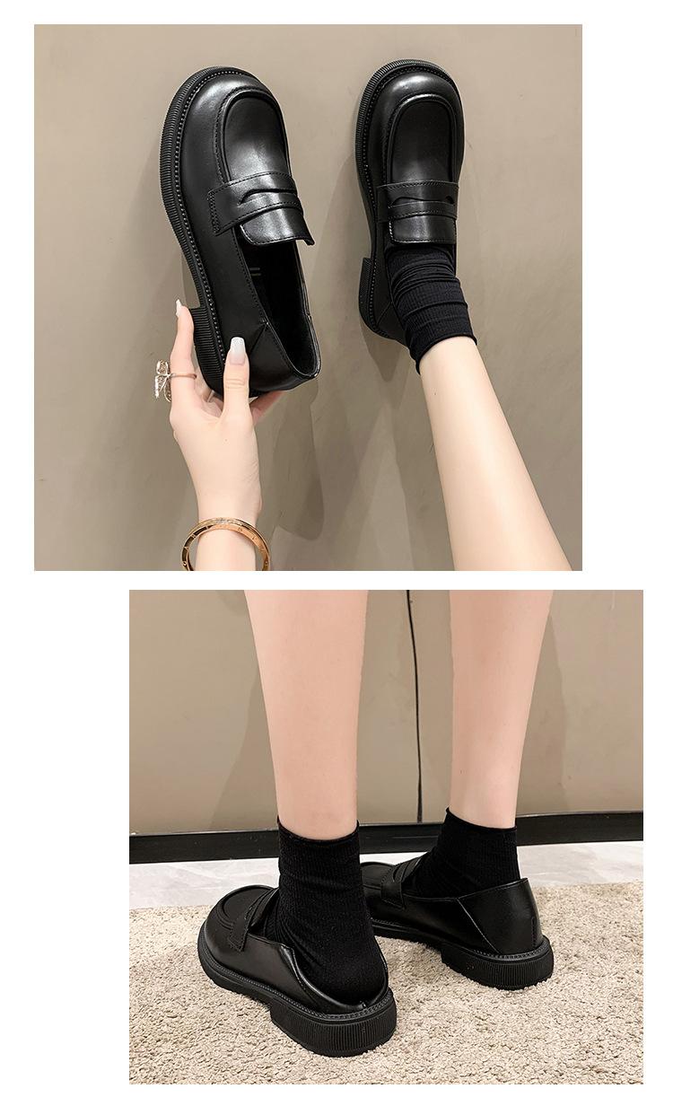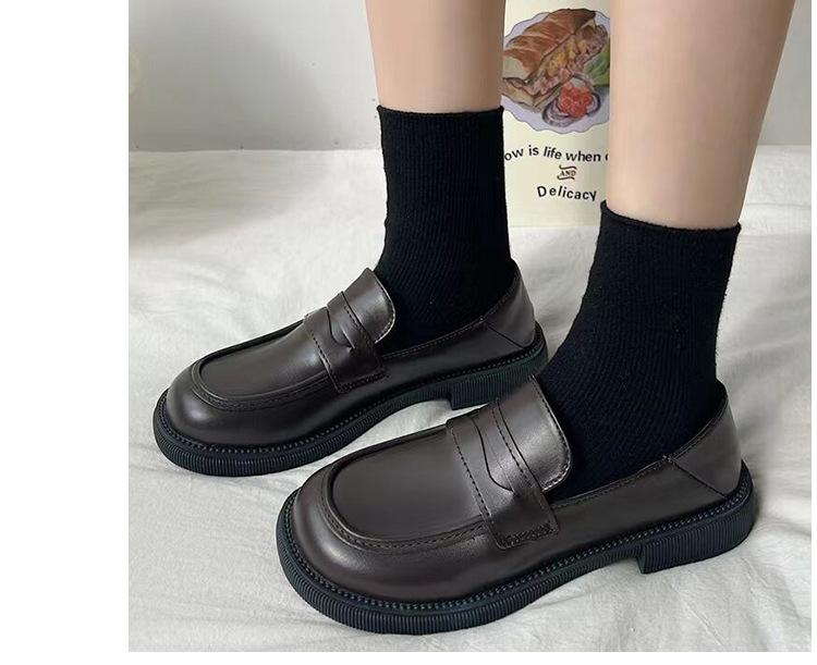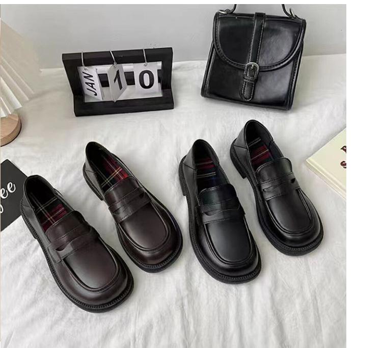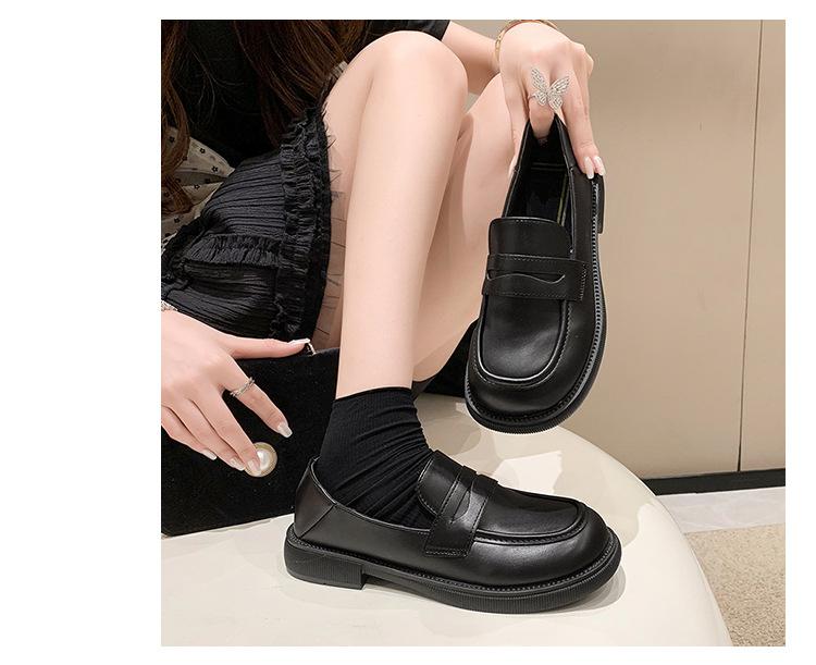 Mocasines de Piel Suave de Punta Redonda Estilo Retro Británico Zapatos de una Sola Capa para Mujer Suela Suave 2023 Nuevos Otoño Slip-on Zapatos de Cuero Pequeños para Uso Exterior