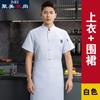 White single row five buttons-short sleeve + apron